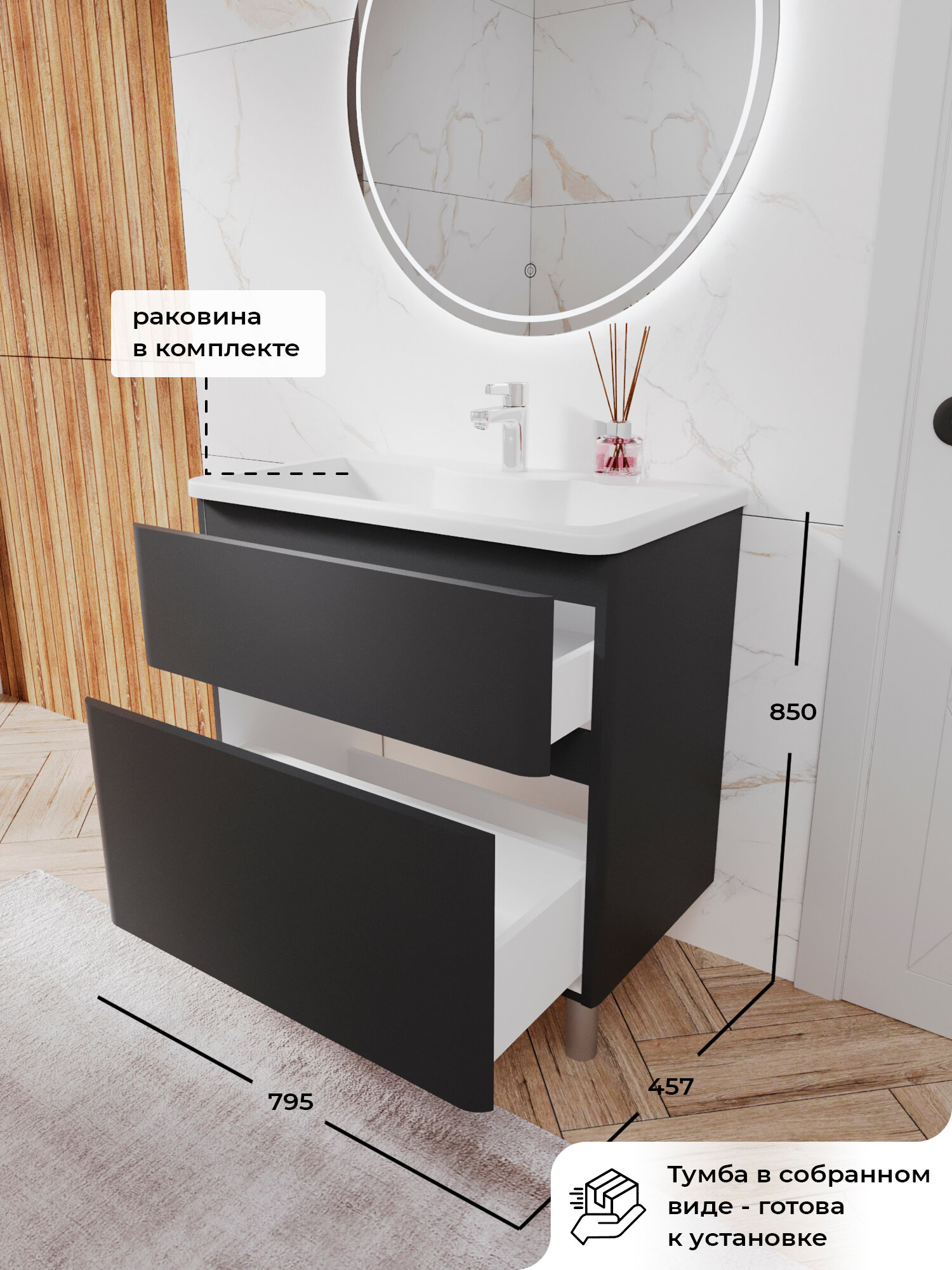 Тумба с раковиной в ванную, тумба для ванной Итана Roberto 80 795х457х850 напольная Графит: сравнение цен, характеристики, фото, актуальное наличие и цены.