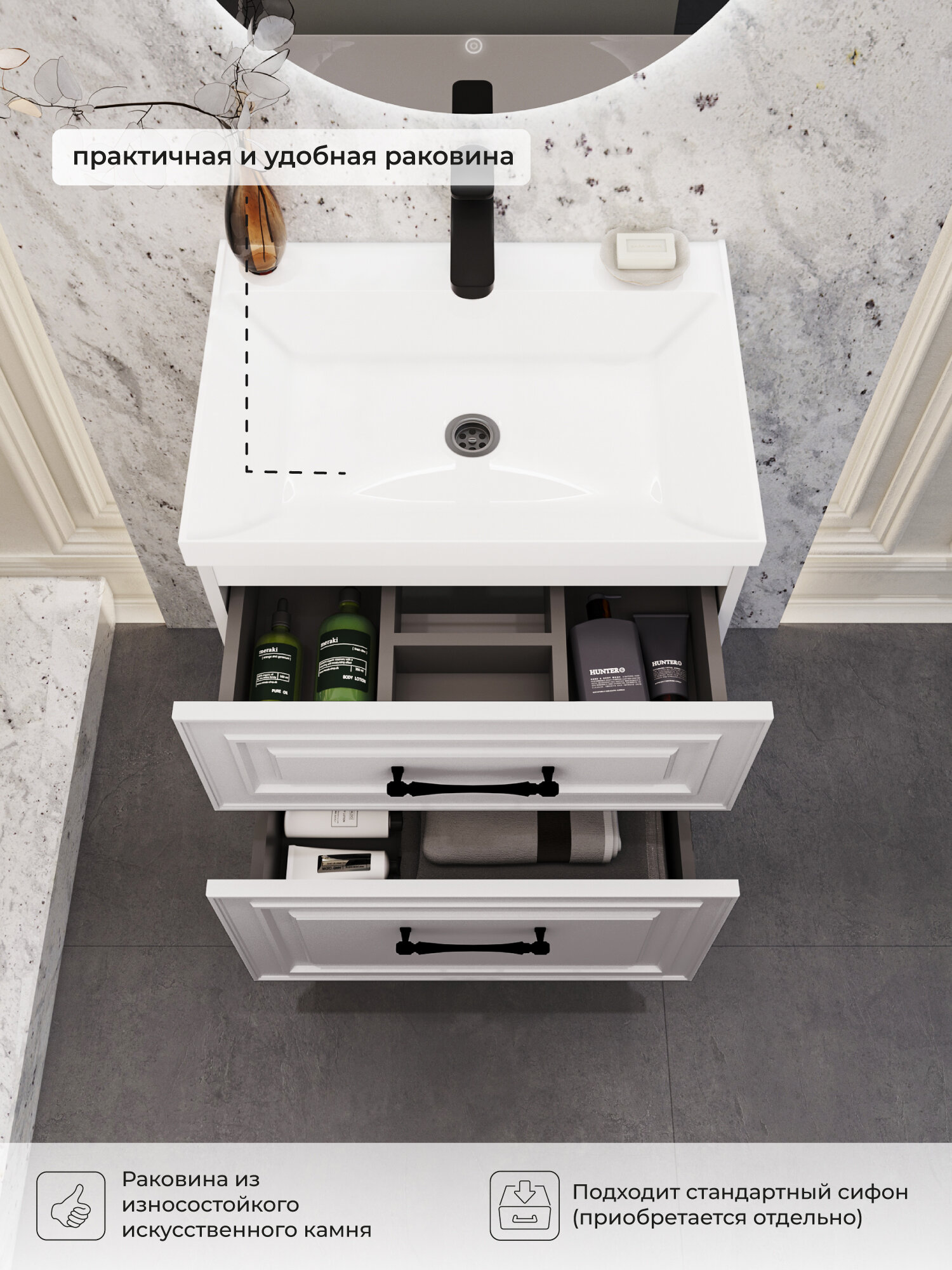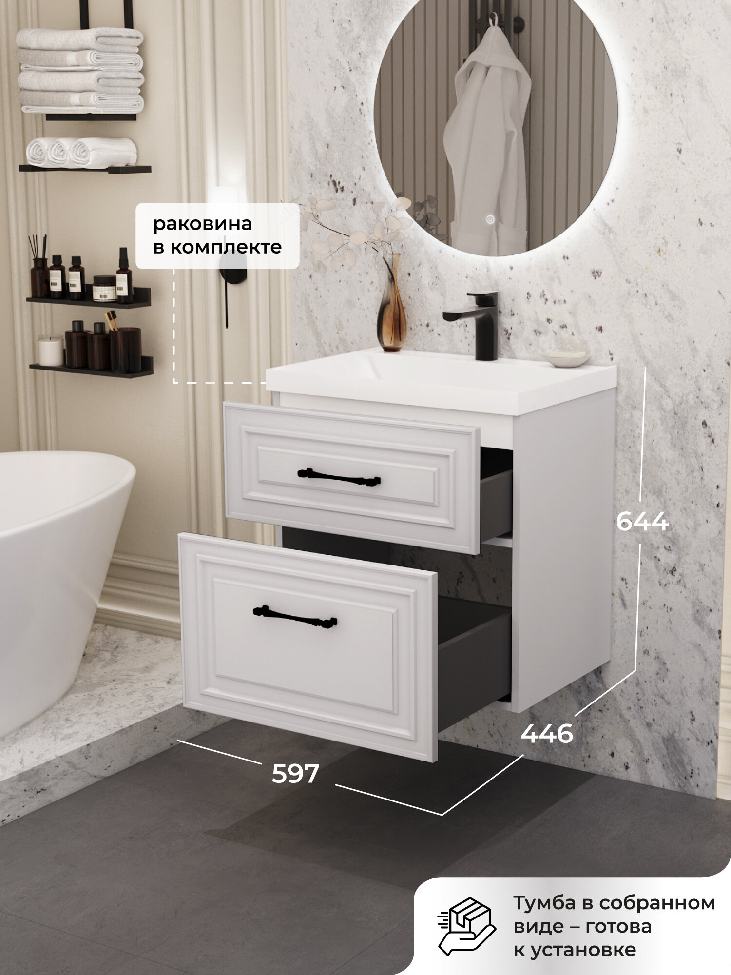 Купить Тумба с раковиной в ванную, тумба для ванной Итана Verona 2.0 60 597х446х644 2Я Бланж с доставкой по всей России.