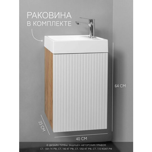 Купить Тумба с раковиной в ванную, умывальник в комплекте, белый крафт с дверцами с доставкой по всей России.