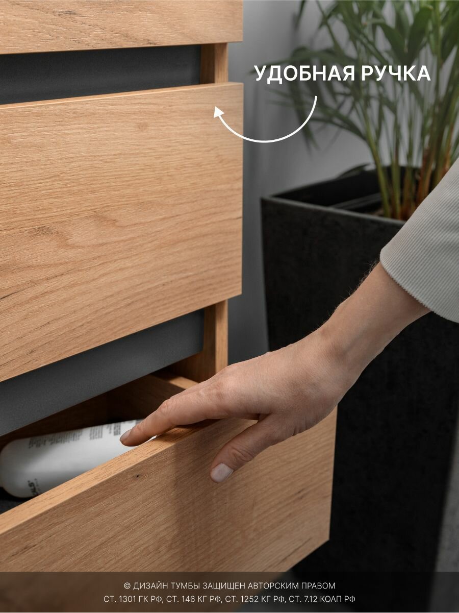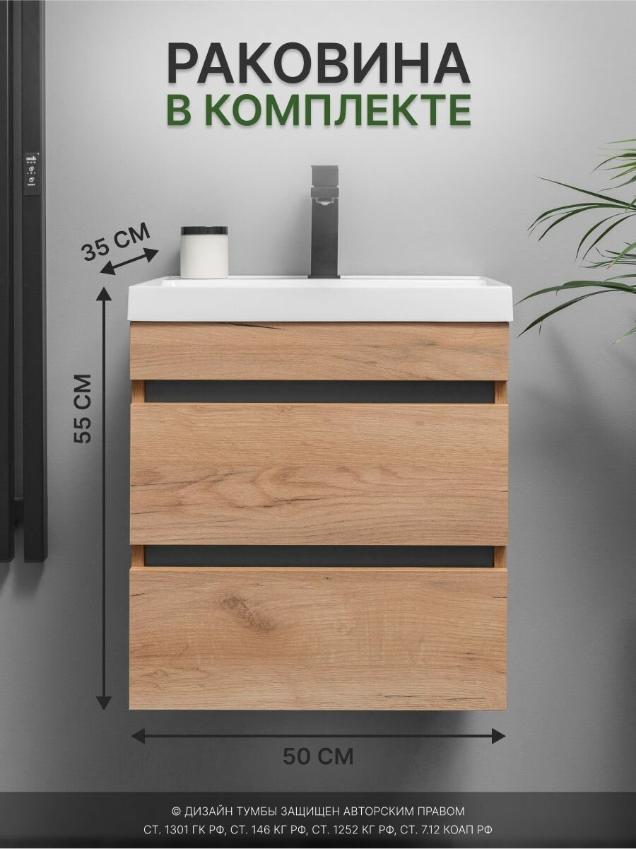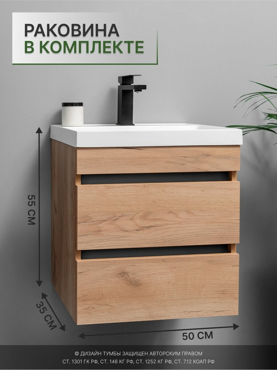 Купить Тумба с раковиной в ванную, умывальник в комплекте IZEO 50 , крафт графит с ящиками с доставкой по всей России.