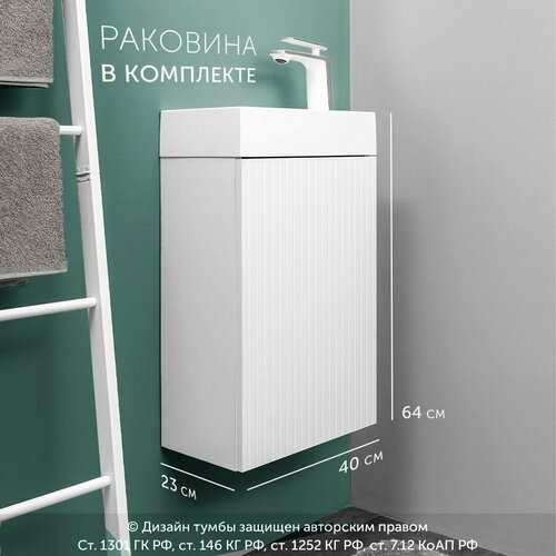 Купить Тумба с раковиной в ванную Picante 40, умывальник в комплекте, белая с дверцей с доставкой по всей России.