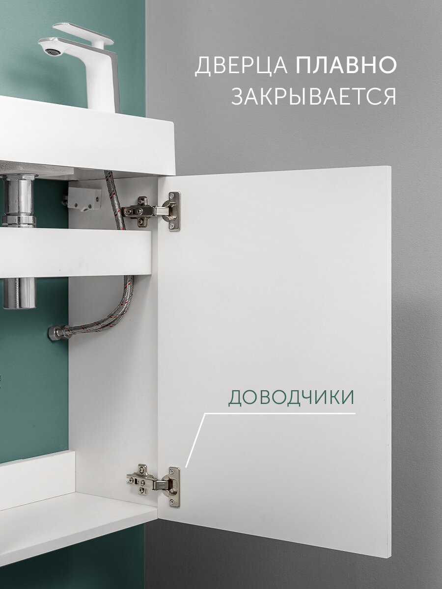 Тумба под умывальник с раковиной в комплекте и фрезерованными фасадами. Подходит для туалета и гостевого санузла. Подвесная мебель без ножек для ванной визуально увеличивает пространство. Маленькая навесная тумбочка достаточно узкая, чтобы войти в помещение небольшого размера, при этом вместительная и функциональная. В туалетной комнате появится и место для мытья рук, и закрытый ящик для хранения вещей, и даже столик под мыло на бортике. Стильная консоль с рифленым фасадом выполнена без ручек и выпилов. Дверца оснащена доводчиком. Шкаф универсальный - дверь можно перевесить и влево, и вправо. Так же как и повернуть смеситель в любую сторону. Мойка выполнена из литьевого мрамора (мраморной крошки и акрила), она легче и прочнее санфаянса. Перелив отсутствует, подойдет любой сифон. Внутри шкафчика нет полок. Гарнитур подойдет к стилю лофт, ар деко, французский шик, минимализм и многим другим. Пленка на ДСП и МДВ надежно защищает деревянные части от разбухания. Смеситель в комплектацию не входит.