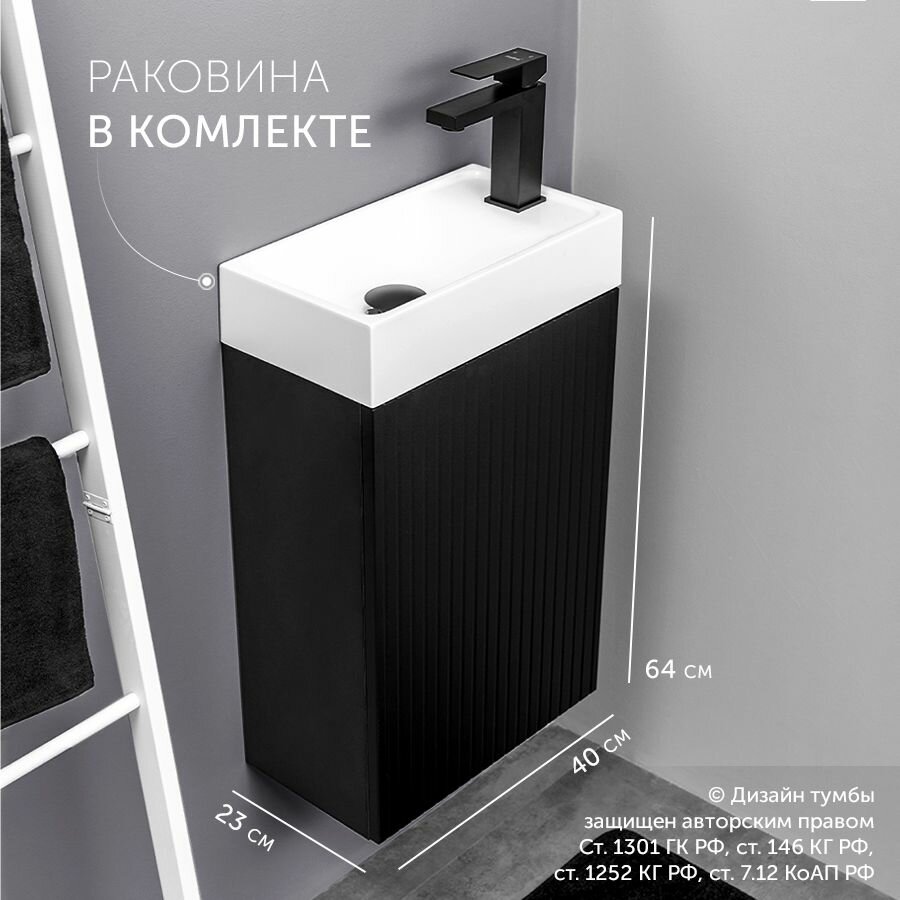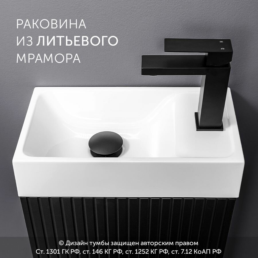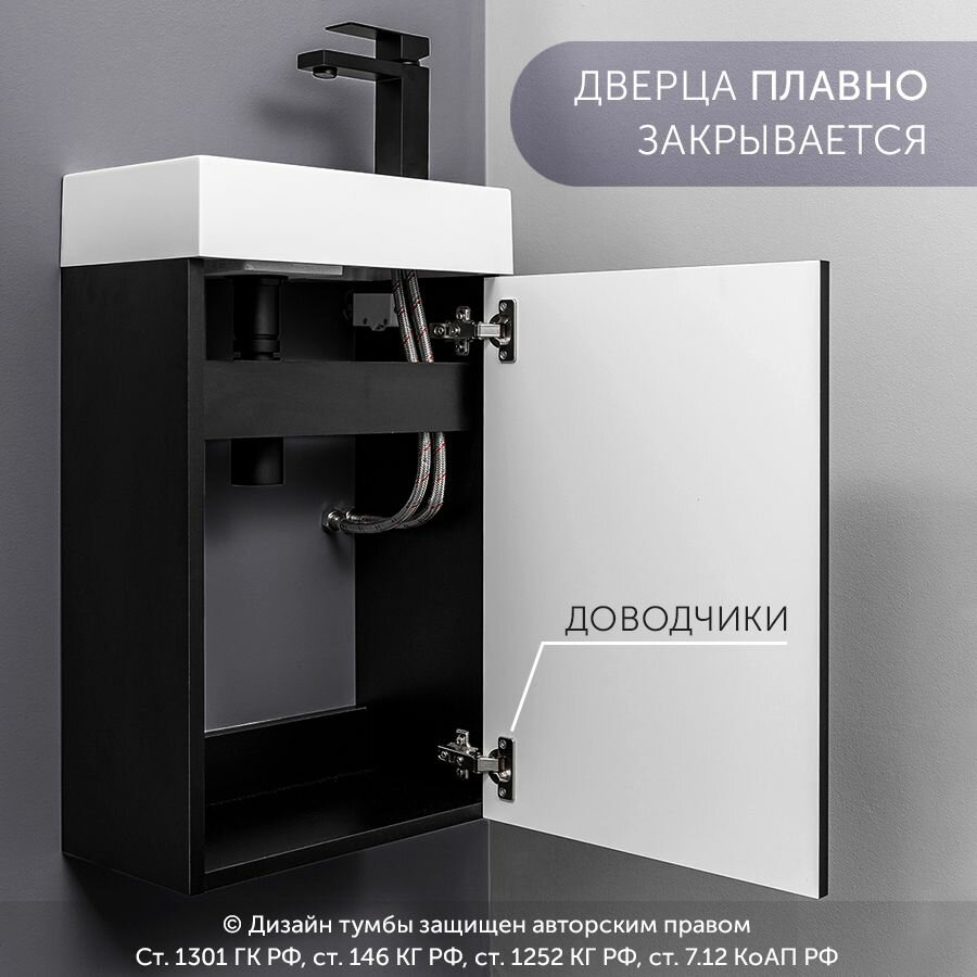 Купить Тумба с раковиной в ванную Picante 40, умывальник в комплекте, черная с дверцей с доставкой по всей России.