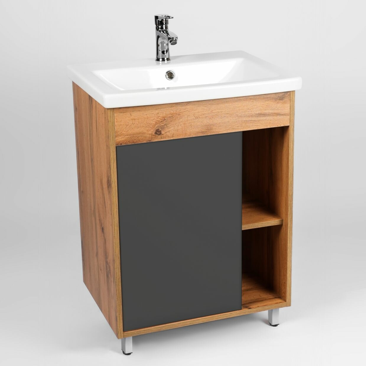 Тумба с раковиной Viant Бостон 50 графит/дуб вотан