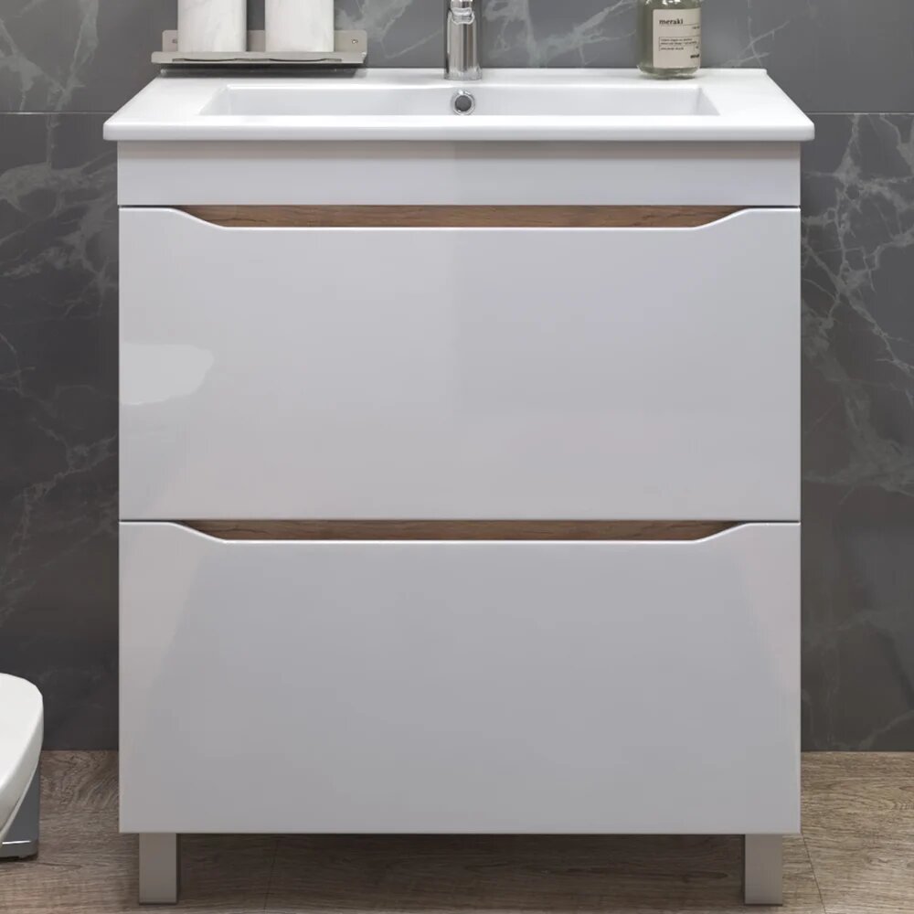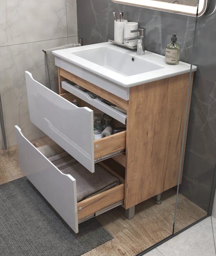 Тумба с раковиной Vigo Grani 60 напольная, 2 ящика, дуб золотой, раковина Элина 60: сравнение цен, характеристики, фото, актуальное наличие и цены.