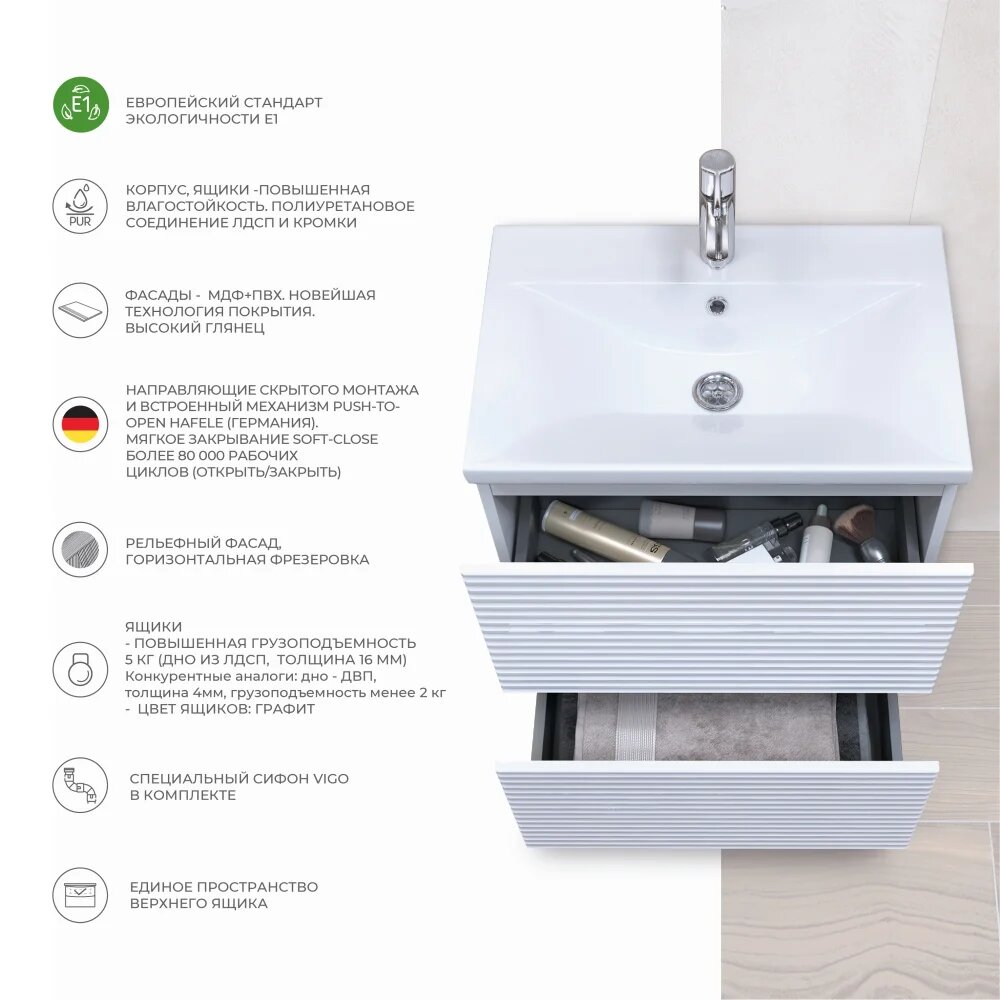Купить Тумба с раковиной Vigo Otti 70 70 см, из МДФ, из фарфора, с ящиками, белая, прямоугольная в современном стиле с доставкой по всей России. Тумба с раковиной Vigo Otti 70 70 см, из МДФ, из фарфора, с ящиками, белая, прямоугольная в современном стиле: сравнение цен, характеристики, фото, актуальное наличие и цены.