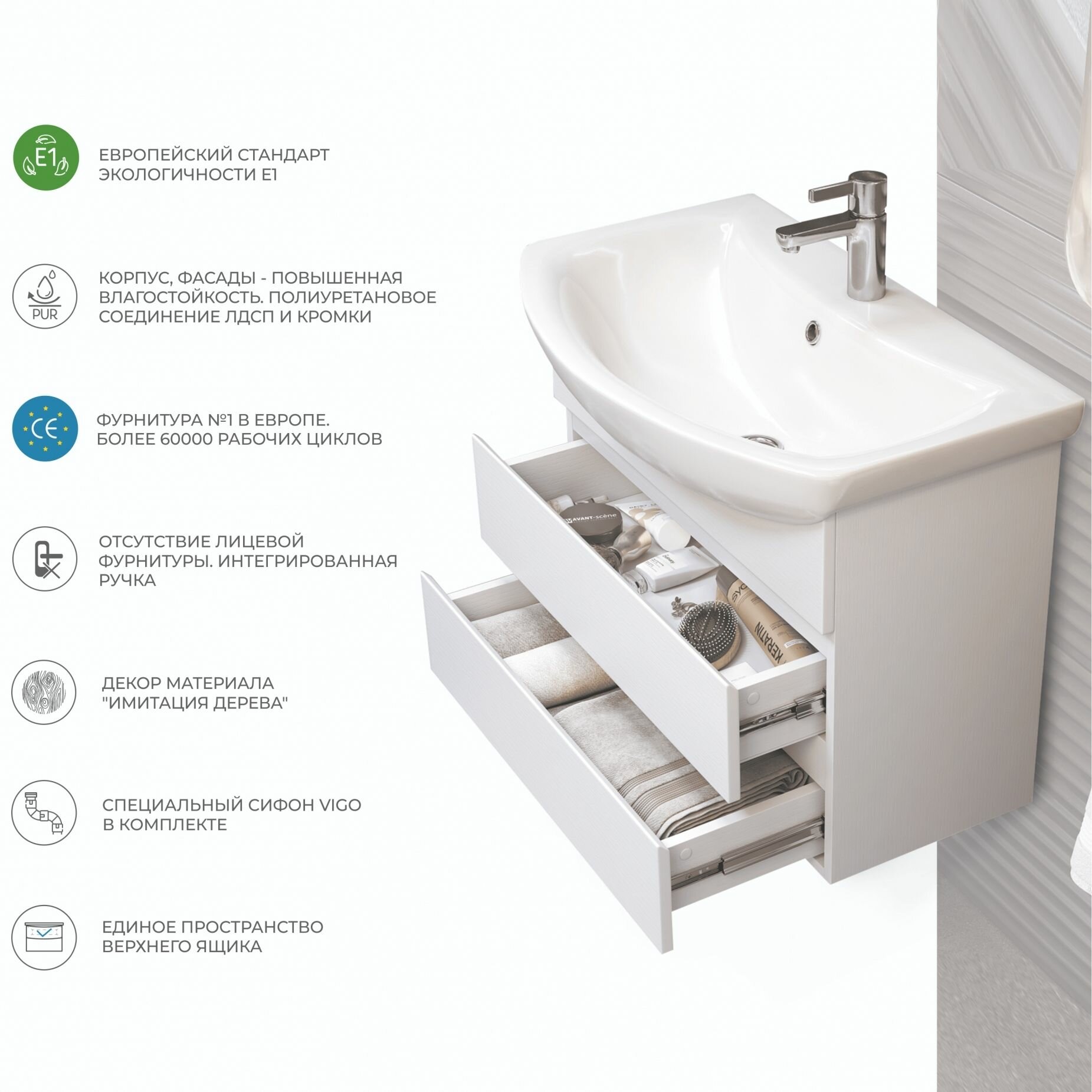 Тумба с раковиной Vigo Wing 600-0-2 подвесная белая: сравнение цен, характеристики, фото, актуальное наличие и цены.