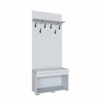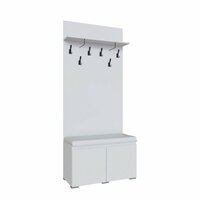 Вешалка с тумбой Плейона поможет организовать место хранения в прихожей. Разместите верхнюю одежду на надежных крючках, головные уборы и сезонные аксессуары на верхней открытой полке, а обувь в закрытой тумбе. Модуль отлично впишется в малогабаритное жилье или квартиру-студию.