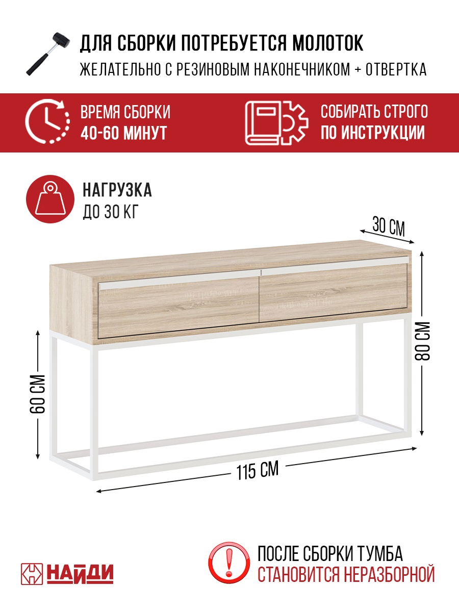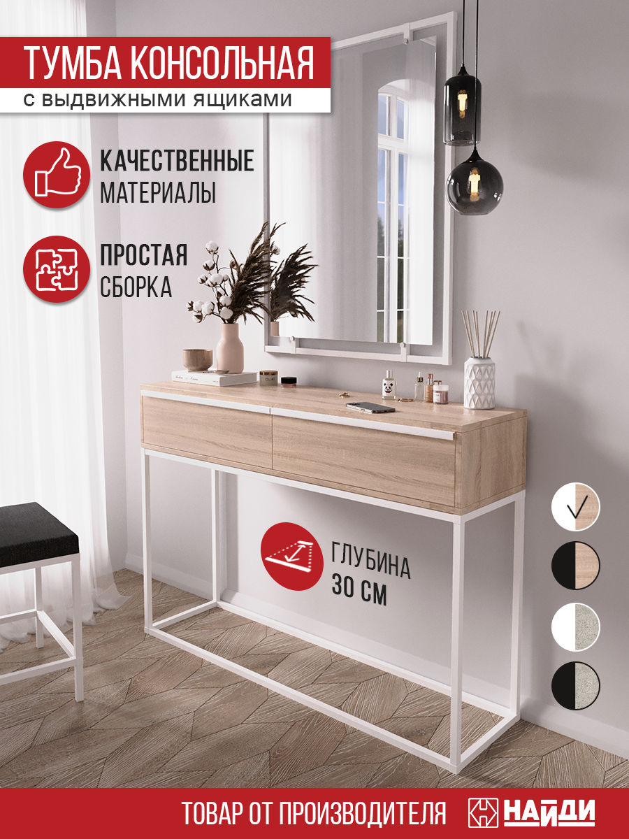 Тумба с ящиками НАЙДИ консоль. Белый муар, ЛДСП Дуб Сонома 115 х 80 х 30 см.: сравнение цен, характеристики, фото, актуальное наличие и цены.