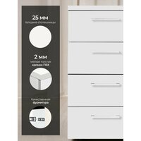 Тумба выполнена в современном стиле, что позволяет ей гармонично вписаться в любой интерьер. Белый цвет корпуса и фасада придает тумбе легкость и свежесть, а также позволяет сочетать ее с различными цветовыми решениями в помещении.