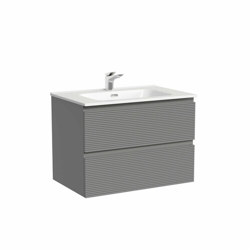 Тумба подвесная с рельефным фасадом Sancos Folk 690х445х500, c двумя ящиками оснащенными доводчиками скрытого монтажа с системой плавного закрывания, цвет Ergraut soft, арт. FL70ES