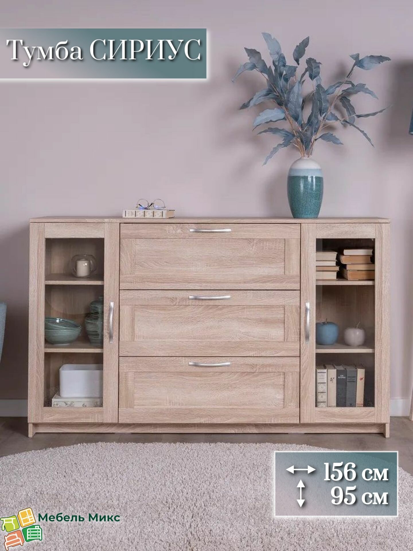 Купить Тумба сириус, 2 двери со стеклом и 3 ящика, 156х41х95 см, дуб сонома с доставкой по всей России. Тумба сириус, 2 двери со стеклом и 3 ящика, 156х41х95 см, дуб сонома: сравнение цен, характеристики, фото, актуальное наличие и цены.