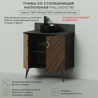 Коллекция Palladio - великолепное звучание современной классики. Изящные пропорции и нестандартный подход к дизайну с сохранением функциональности. Тумба со столешницей выполнена из ЛДСП в модных деревянных декорах. Технология производства позволила сделать элементы мебели устойчивыми к влаге. Качественная фурнитура с доводчиками обеспечивает легкое открывание и плавное закрывание дверей. Дизайнерские металлические ручки с покрытием - не только декоративный элемент, но и удобное решение - фасады остаются чистыми при постоянном открывании и закрывании. Вырез под сифон универсальный, для любого типа. Благодаря своей конструкции тумба обеспечивает удобный доступ к раковине и позволяет скрыть коммуникации. Тумба со столешницей в ванную оснащена удобным шкафчиком для хранения, что позволяет разместить всё необходимое под рукой. Для точного выбора тумбочки со столешницей в ванную комнату рекомендуем обратиться к схеме замеров, которая находится на фото в карточке товара, размеры изделия могут отличаться +/-1 см в связи со спецификой производства.