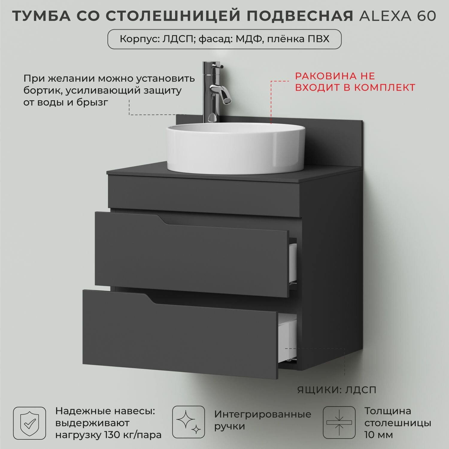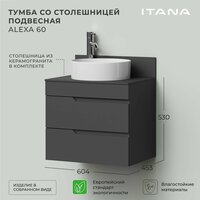 Купить Тумба со столешницей подвесная Итана Alexa 60 604х453х530 Графит с доставкой по всей России. Тумба со столешницей подвесная Итана Alexa 60 604х453х530 Графит: сравнение цен, характеристики, фото, актуальное наличие и цены.
