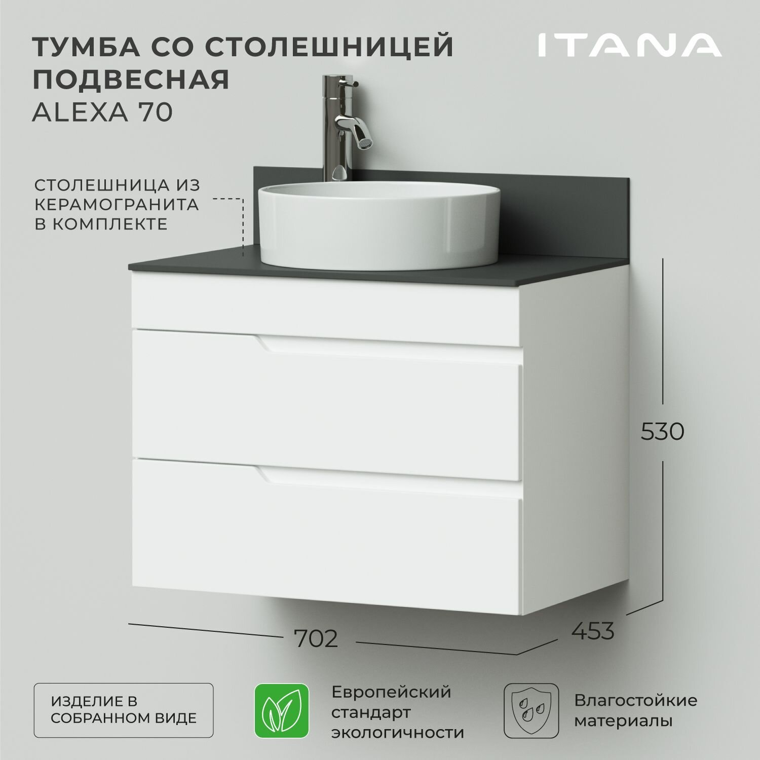 Купить Тумба со столешницей подвесная Итана Alexa 70 702х453х530 Белый глянец с доставкой по всей России. Тумба со столешницей подвесная Итана Alexa 70 702х453х530 Белый глянец: сравнение цен, характеристики, фото, актуальное наличие и цены.