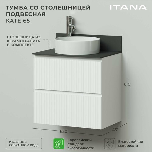 Тумба со столешницей подвесная Итана Kate 65 650х451х610 Бланж: сравнение цен, характеристики, фото, актуальное наличие и цены.