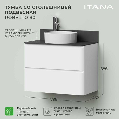 Купить Тумба со столешницей подвесная Итана Roberto 80 798х462х586 Эмаль Белый глянец с доставкой по всей России. Тумба со столешницей подвесная Итана Roberto 80 798х462х586 Эмаль Белый глянец: сравнение цен, характеристики, фото, актуальное наличие и цены.