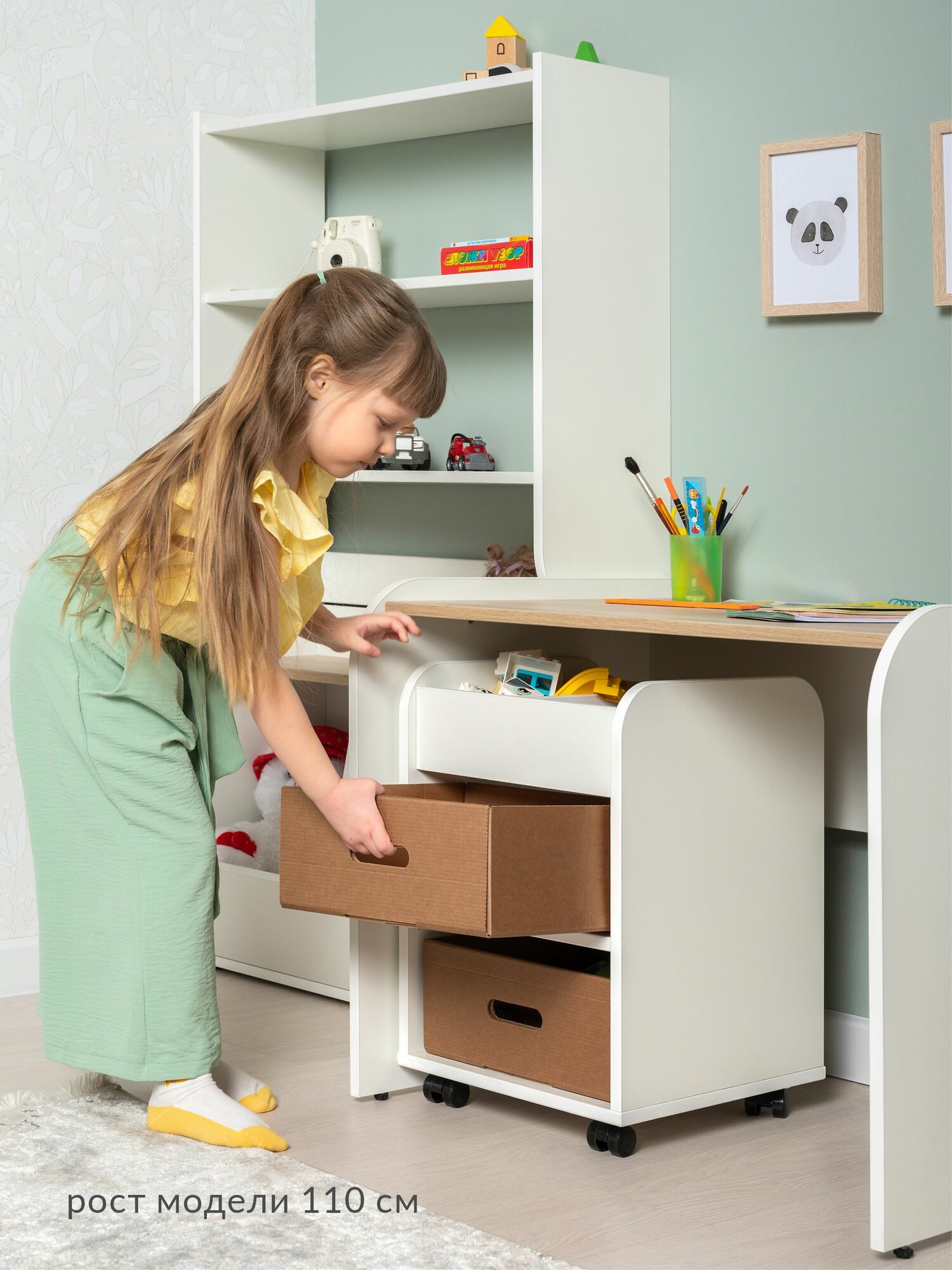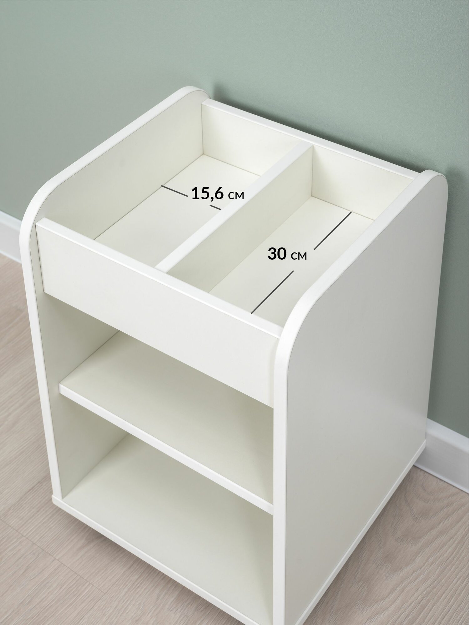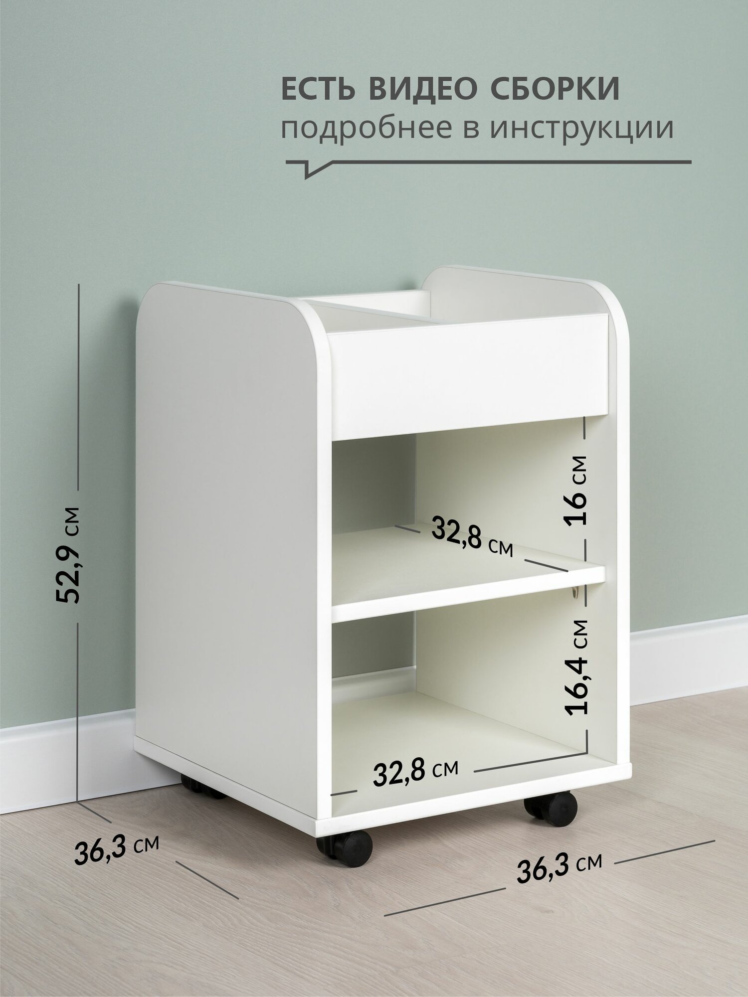 ► Тумбочку можно легко перемещать по комнате вслед за ребёнком, к месту его новой игры, так что ручки, карандаши и бумага всегда будут в удобной доступности. А на ночь тумбочку разумно убрать под стол, где она не будет занимать лишнее место. В верхней части тумбочки есть встроенный органайзер для ручек, карандашей, кисточек, раскрасок и т. п. Картонные короба 2 шт, которые представлены на фотографиях идут в комплекте. Среднюю полку можно снять при необходимости. Полка крепится на металлических фиксирующих полкодержателях - надёжно, эстетично, быстросъёмно.