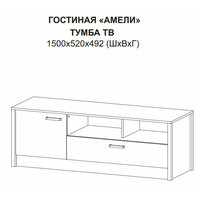 Тумба ТВ Эра-мебели Амели дуб Юкон/ бетон темный 1500х520х492мм