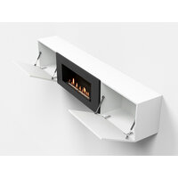 Материал тумбы: ЛДСП Материал биокамина: очаг сталь СТ08ПС, топливный блок нержавеющая сталь AISI 304 Вид установки: настенная Фасад: матовый, на газлифтах и петлях, открывается сверху вниз Цвет тумбы: белая Цвет очага: черный Размер (ВхШхГ): 400х1800х300 мм Длина линии огня: 51 см Среднее время горения: 90 мин Средний расход топлива: 560 мл/ч Объем горелки: 700 мл Рекомендуемая площадь помещения: от 18 м2