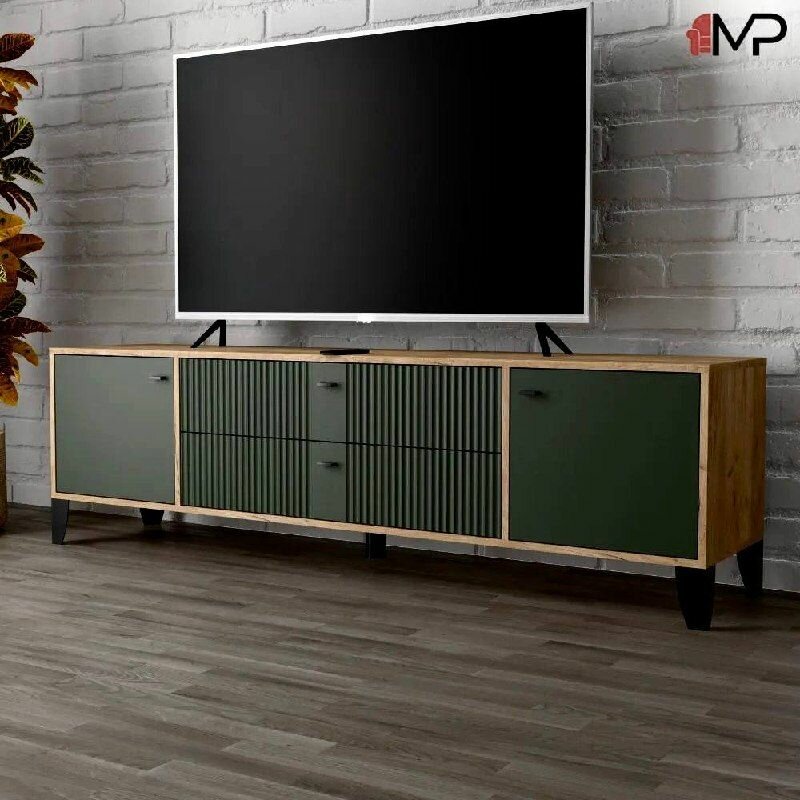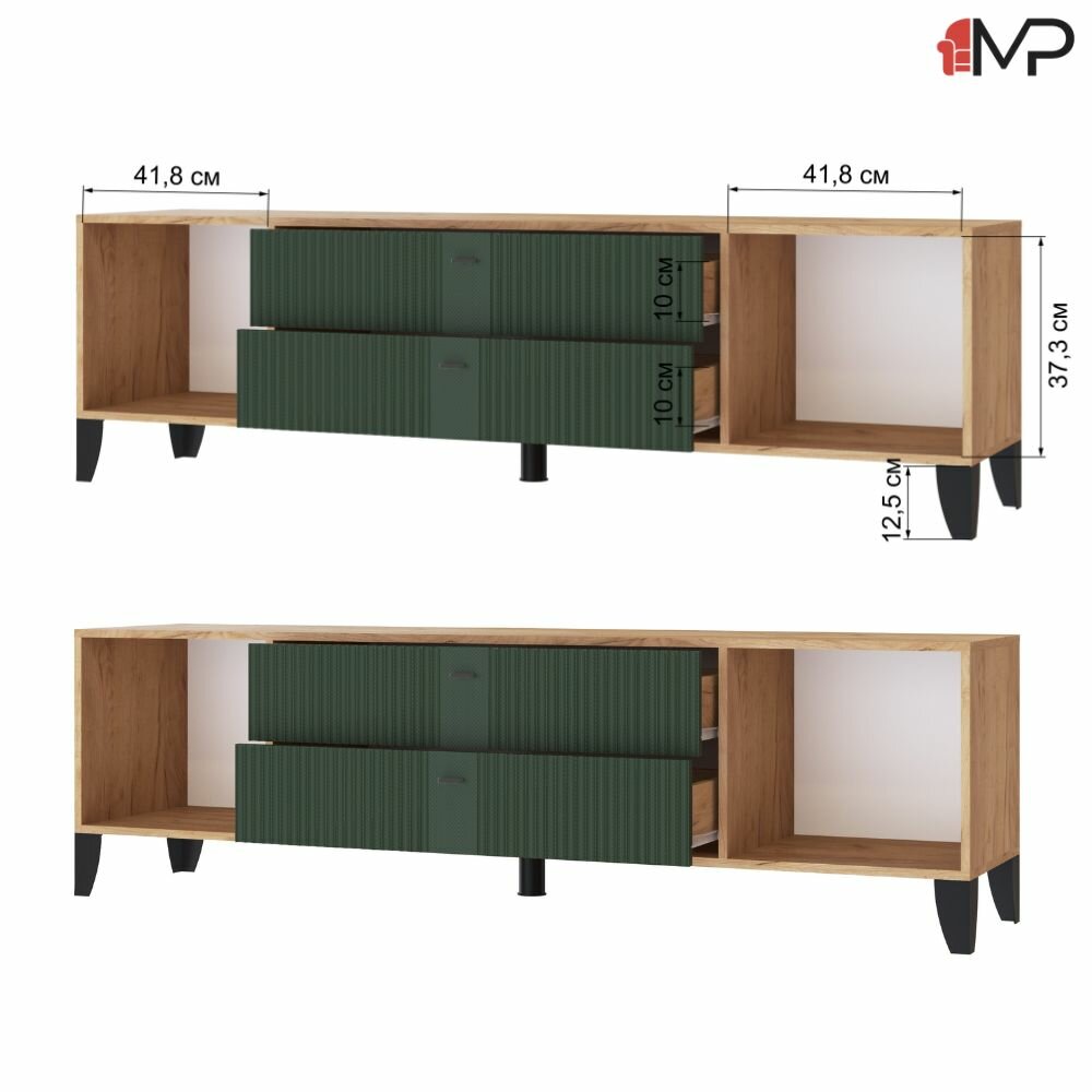 Тумба ТВ ПАРУС-10 дуб крафт золотой/карбон дарк грин 1802х530х400 мм