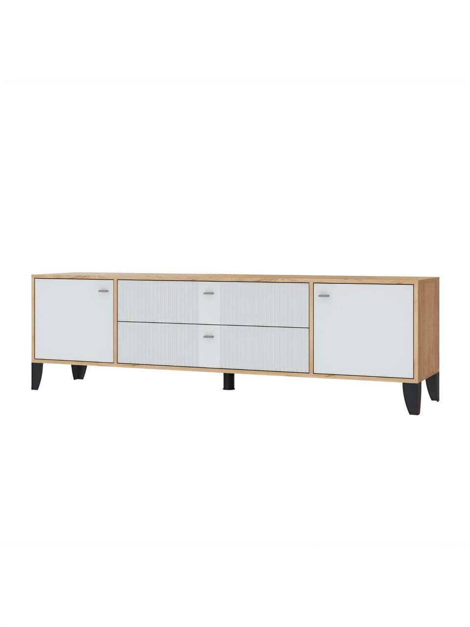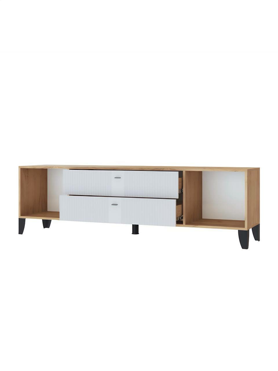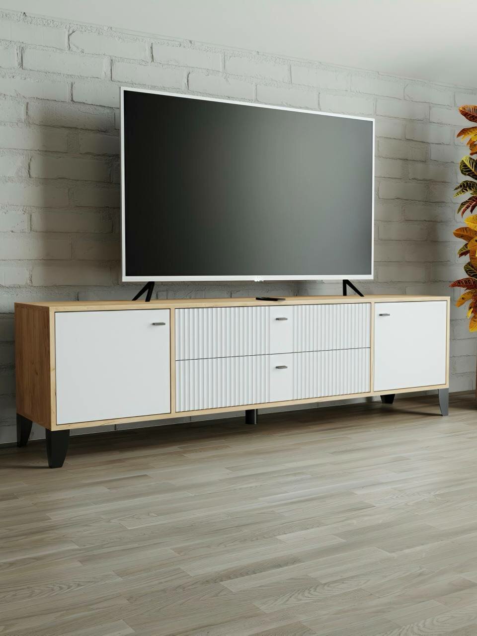 Тумба ТВ ПАРУС-10 дуб крафт золотой/карбон фарфор 1802х530х400 мм