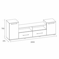 Тумба оснащена двумя ящиками и двумя дверцами, а также нишей под технику. Это обеспечивает удобное хранение различных предметов и обеспечивает быстрый доступ к ним.