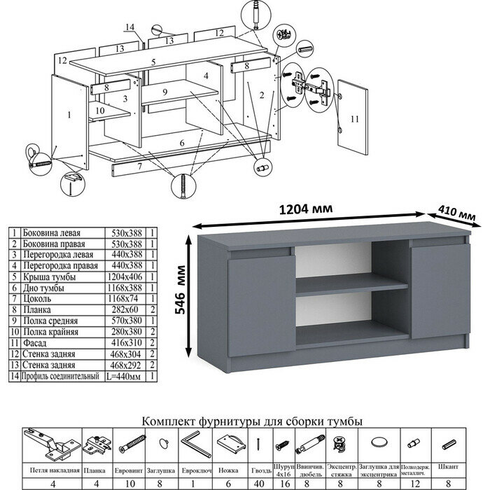 - Можно использовать как ТВ тумбу, так и обычную для хранения и размещения Ваших вещей.