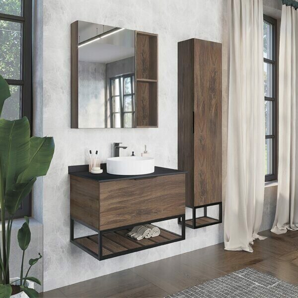 Тумба-умывальник COMFORTY «Порто-75», дуб тёмно-коричневый с чёрной столешницей, c раковиной 9110: сравнение цен, характеристики, фото, актуальное наличие и цены.