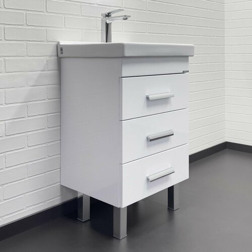 Купить Тумба-умывальник напольная Comforty Никосия 50Н белый глянец с раковиной Fest 50 F01 с доставкой по всей России.