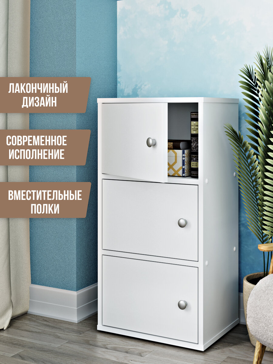 Комоды и тумбы являются важным элементом мебели дома или квартиры. Тумба с распашными дверцами сочетает лаконичный дизайн и функциональность, имеет 3 вместительные полки. Комод белый можно поставить в спальню как тумбу для хранения одежды и косметики; в детскую - как комод для игрушек, детскую мебель для хранения канцелярии для школы; в офис -как шкаф для документов, подставку для цветов; в гостиную -как книжный шкаф стеллаж; в прихожую -как обувницу или полку для обуви. Также тумбочку можно поставить на балкон как ящик для хранения мелочей, книг. Комод деревянный -стильная мебель. Тумба прикроватная белая отлично впишется в любой интерьер. Мебель упакована с применением дополнительной защиты, чтобы избежать повреждений при транспортировке. Камод изготовлен из высококачественного ЛДСП и фурнитуры. Инструкция по сборке и набор крепежей в комплекте. Комод прекрасно комплектуется с полками, тумбами, обувницами и стеллажами нашего производства для лучшей организации Вашего пространства
