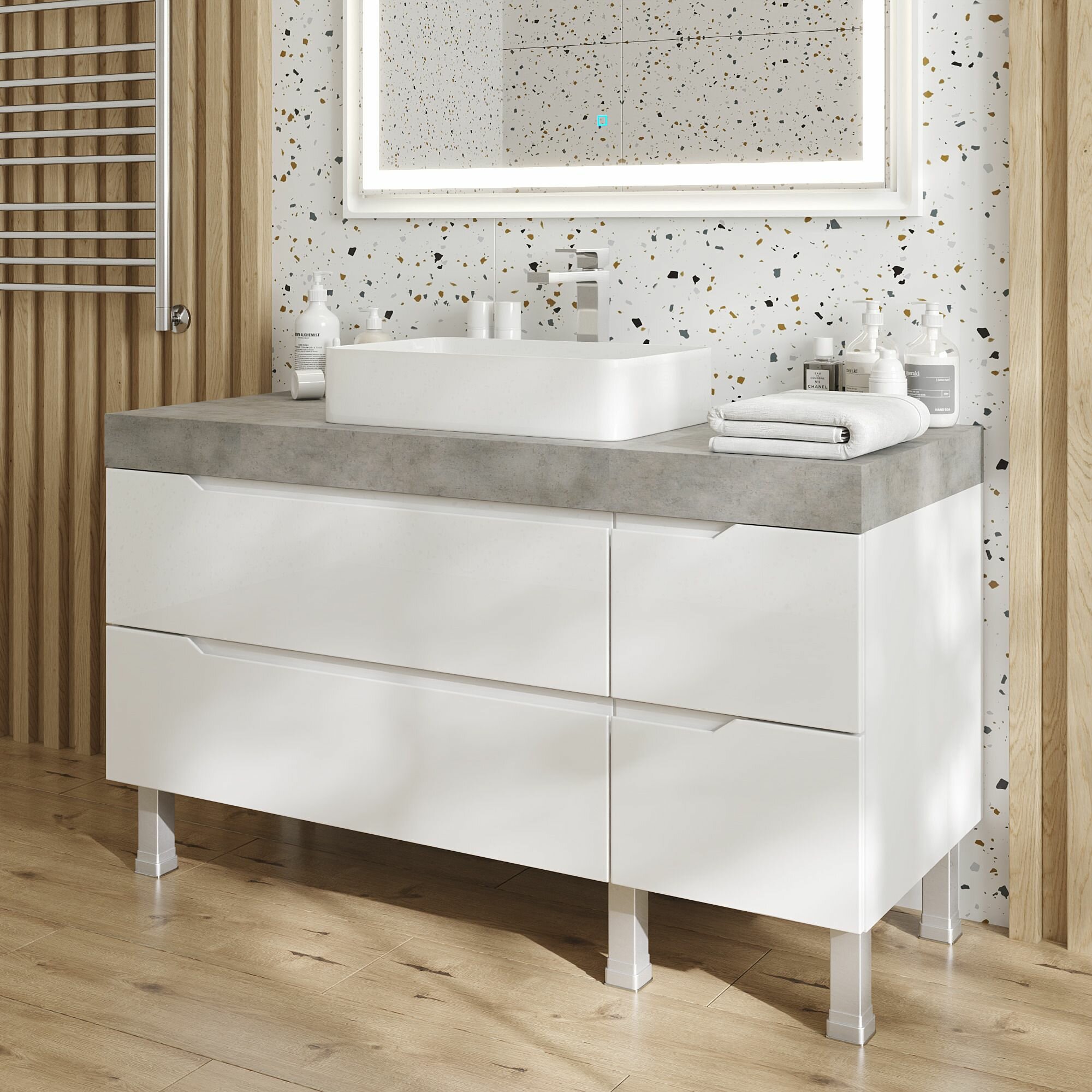 Тумба в ванную комнату FAURAplus, Элен (Милена) 100-4, универсальная, подиум, бетон, под накладной умывальник.: сравнение цен, характеристики, фото, актуальное наличие и цены.