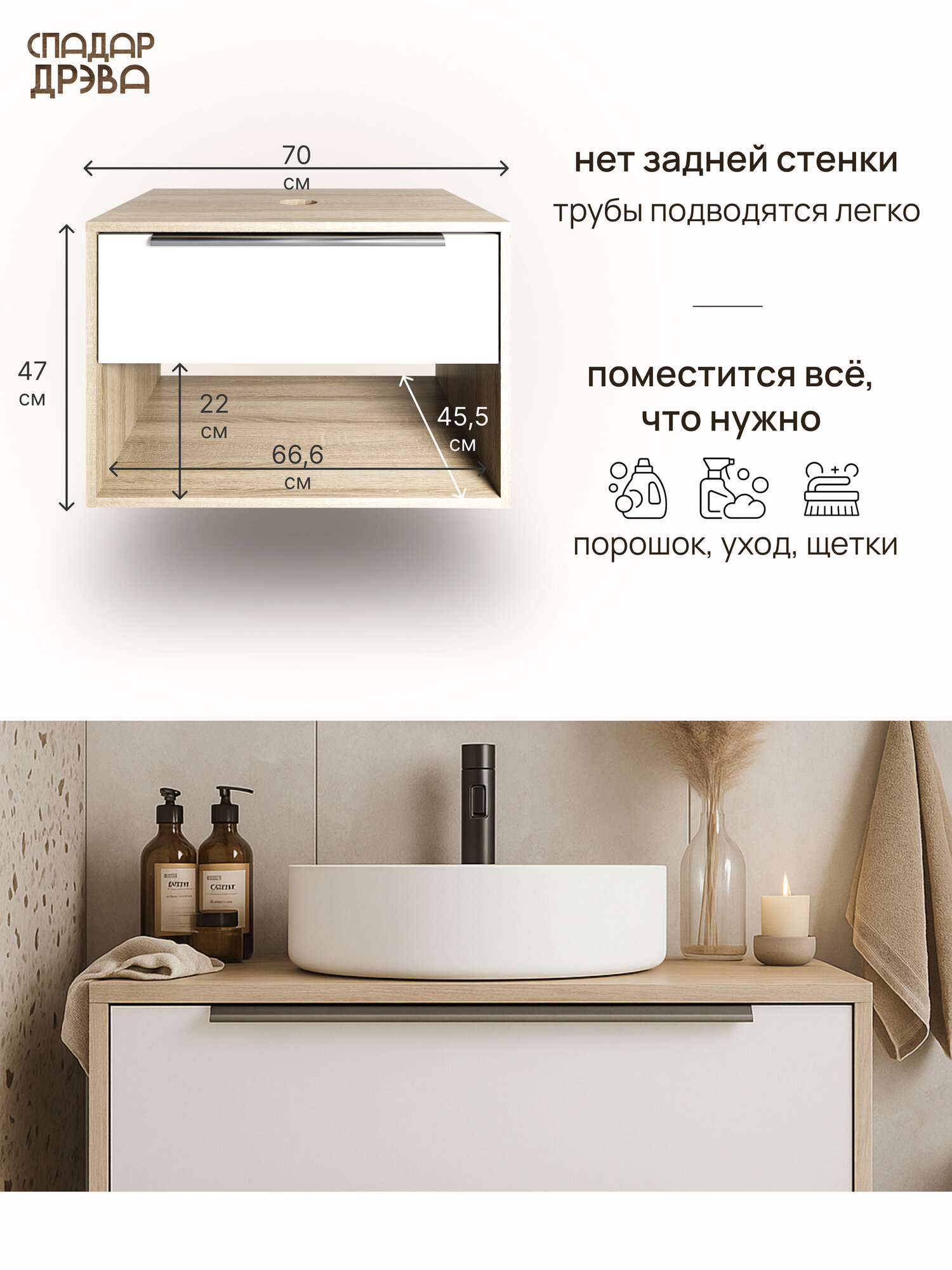 Тумба в ванную под раковину подвесная, СпадарДрэва 70х47х45,5 см / тумбочка подвесная для ванной, ЛДСП: сравнение цен, характеристики, фото, актуальное наличие и цены.