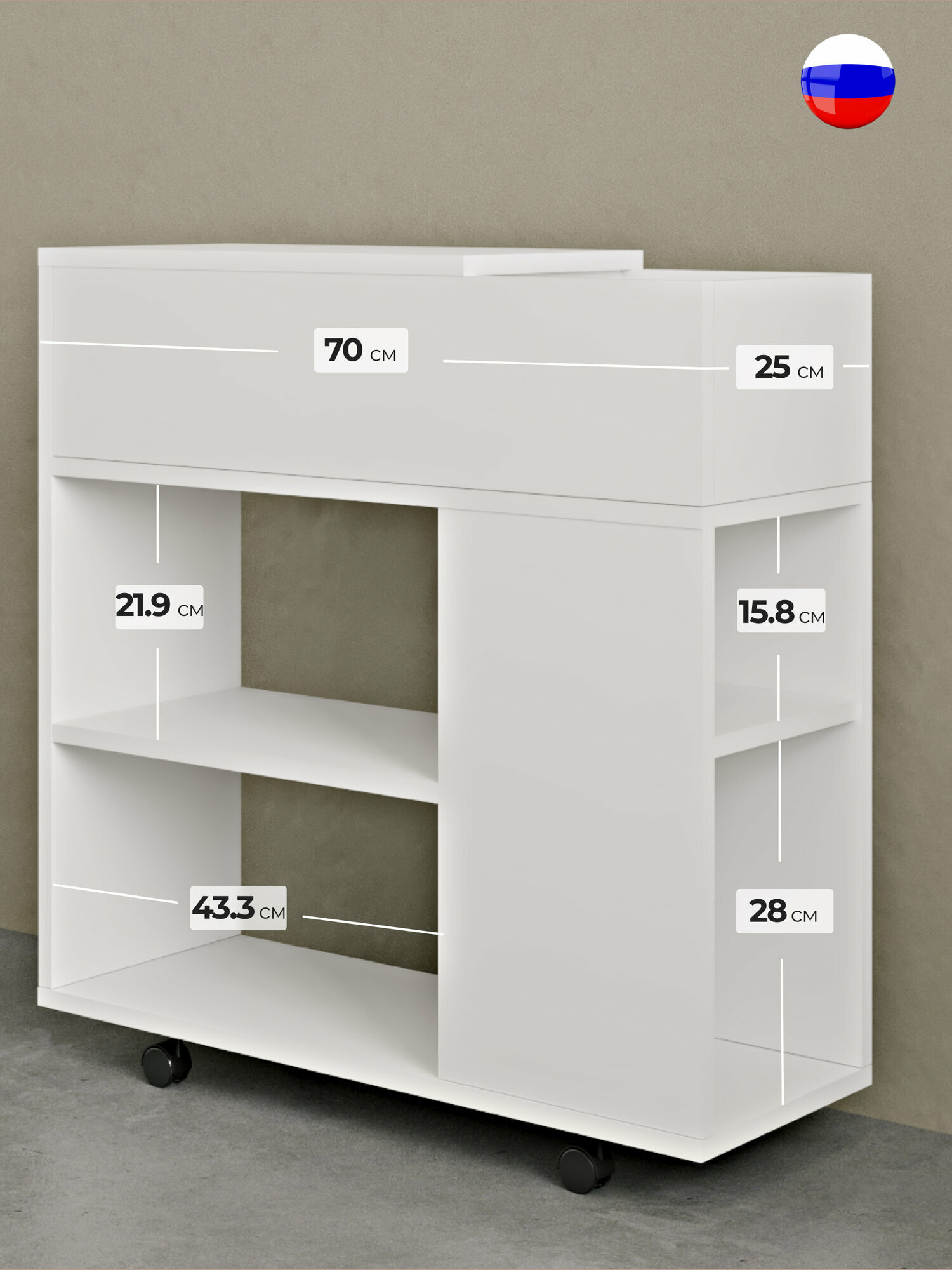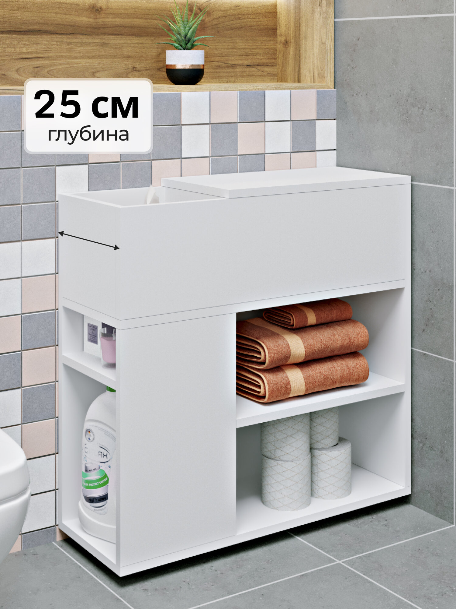 Тумба в ванную узкая на колесиках RickWood, 25х70х67 см, Белый цвет: сравнение цен, характеристики, фото, актуальное наличие и цены.