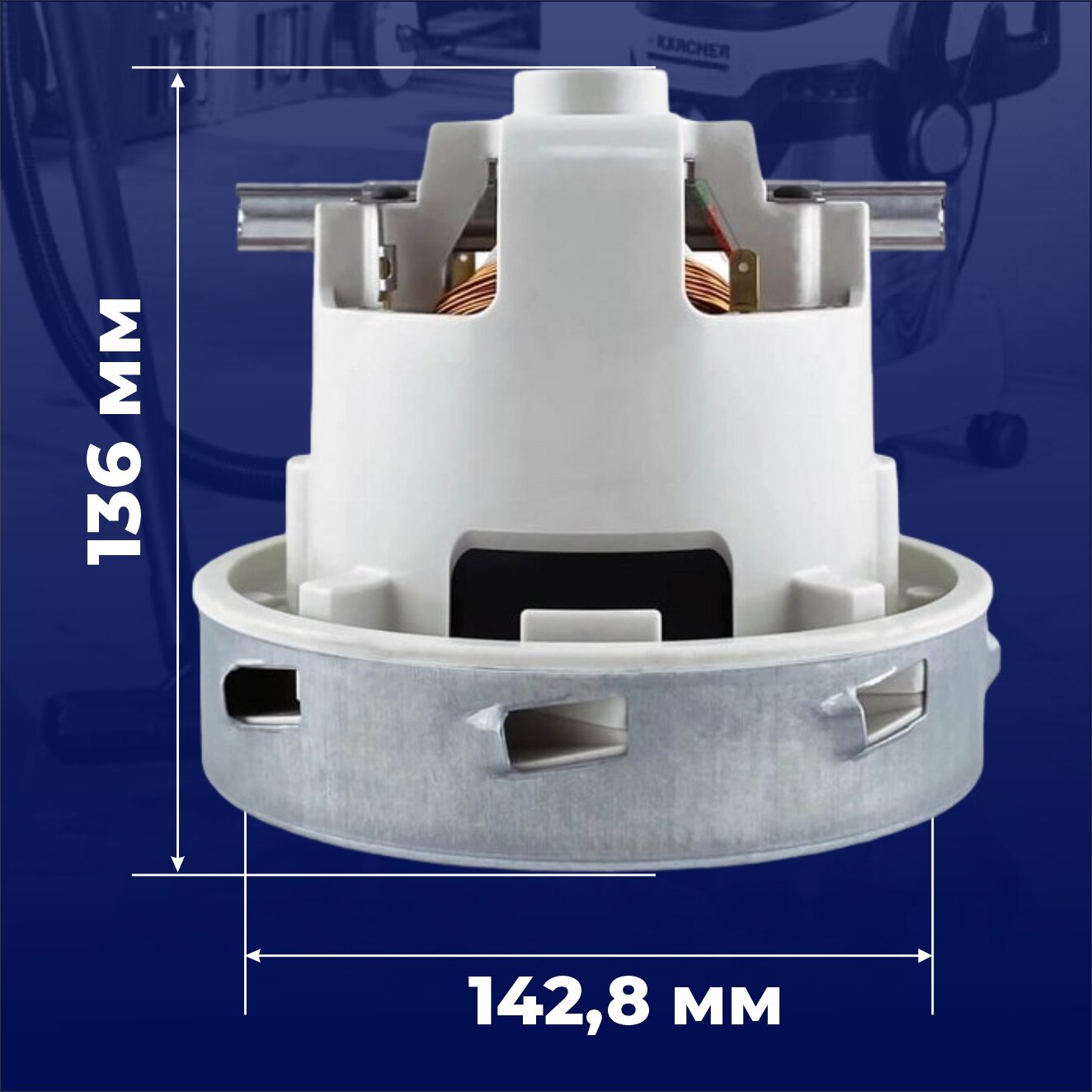 Турбина высокооборотистая 1300 W для Karcher совместима с моделями NT361, NT362 ЕСО, NT561, NT35/1, NT 65/2, NT 72/2, Xpert NT 360, Puzzi 100, Hilti VC 20, VC 40, VC 60. Karcher NT 14/1, NT 25/1, NT 35/1, NT 35/1 TAKT, NT 40/1, NT 40/1 TAKT, NT 45/1, NT 45/1 TAKT, NT 55/1 TAKT, Puzzi 8/1C, Pro Puzzi 400.