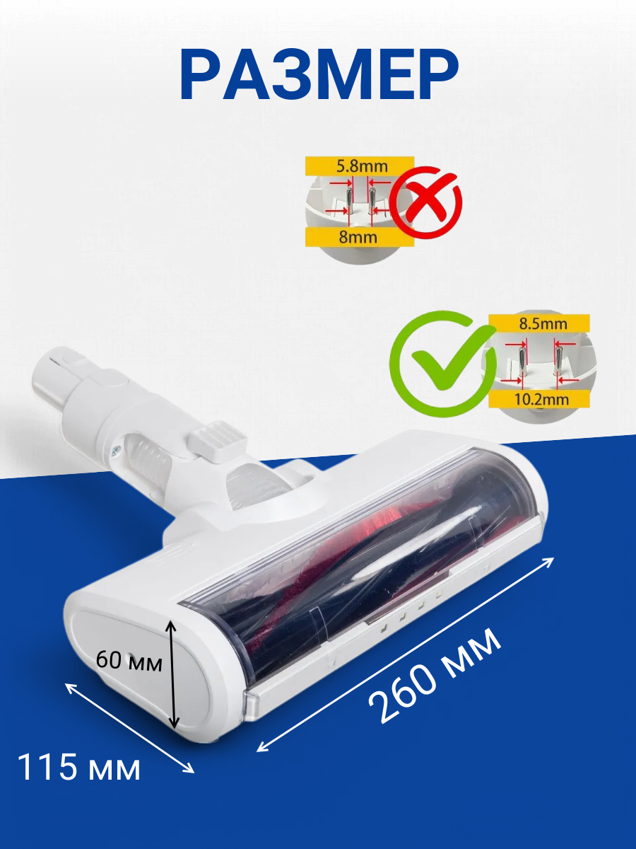 - Широкий коннектор 8.5 мм: обеспечивает надежную фиксацию и совместимость с большинством моделей пылесосов Dreame. - Подсветка: встроенная подсветка помогает обнаружить даже мелкие загрязнения и пыль в труднодоступных местах. - Идеальна для ковров: специальная конструкция щетки обеспечивает глубокую очистку ковровых покрытий, удаляет пыль, шерсть домашних животных и другие загрязнения. - Универсальность: подходит для различных типов поверхностей, включая твердый пол, ковровые покрытия и мебель. - Простота установки: легкая установка и демонтаж делают процесс уборки быстрым и удобным. - Долговечность: высококачественные материалы и продуманная конструкция обеспечивают долгий срок службы устройства.