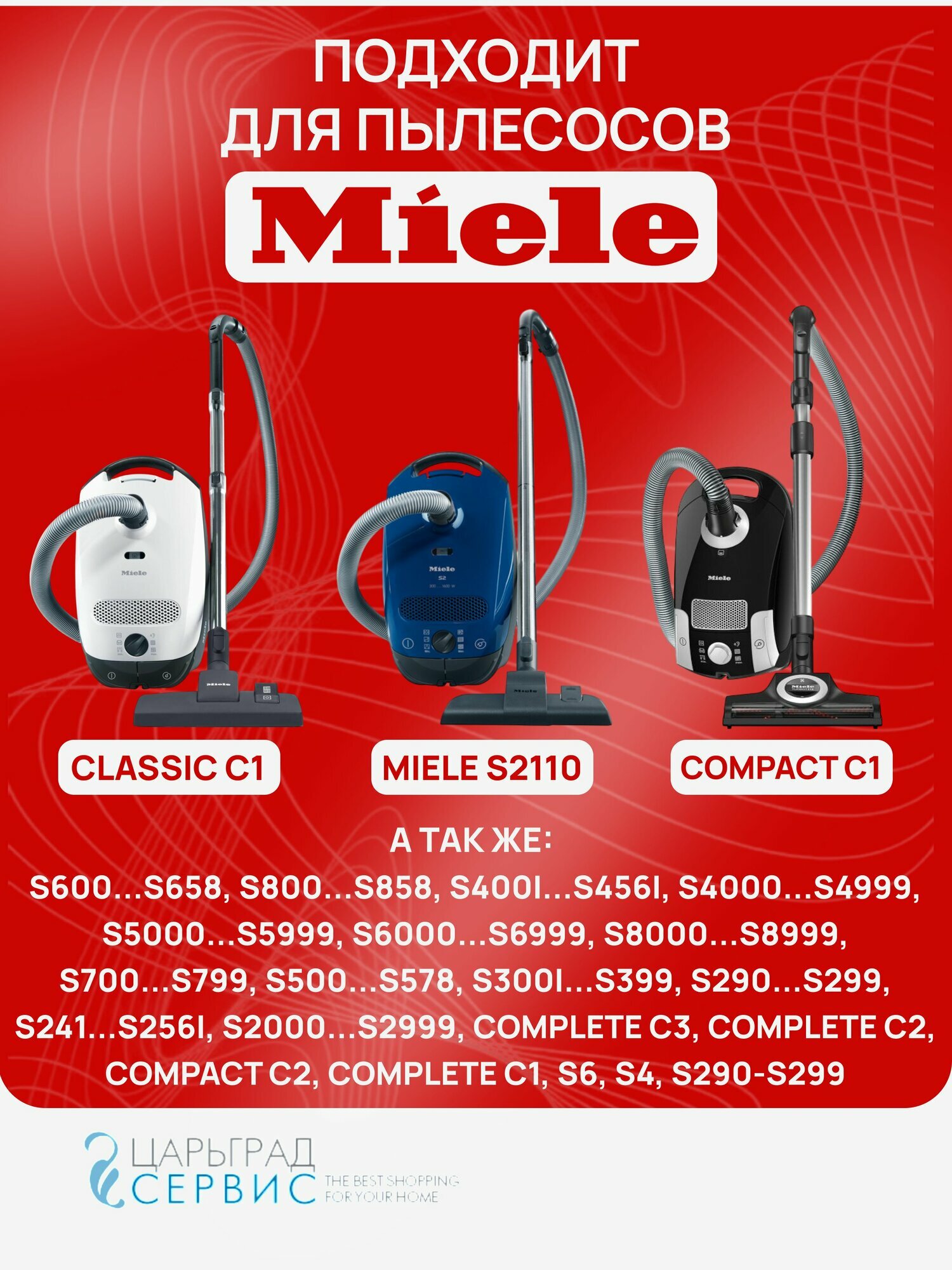 Подходит ко всем моделям пылесосов Miele S600. S658, S800. S858, S400I. S456I, S4000. S4999, S5000. S5999, S6000. S6999, S8000. S8999, S700. S799, S500. S578, S300I. S399, S290. S299, S241. S256I, S2000. S2999, Complete C3, Complete C2, Classic C1, Compact C2, Compact C1, Complete C1, S6, S4, S290-S299