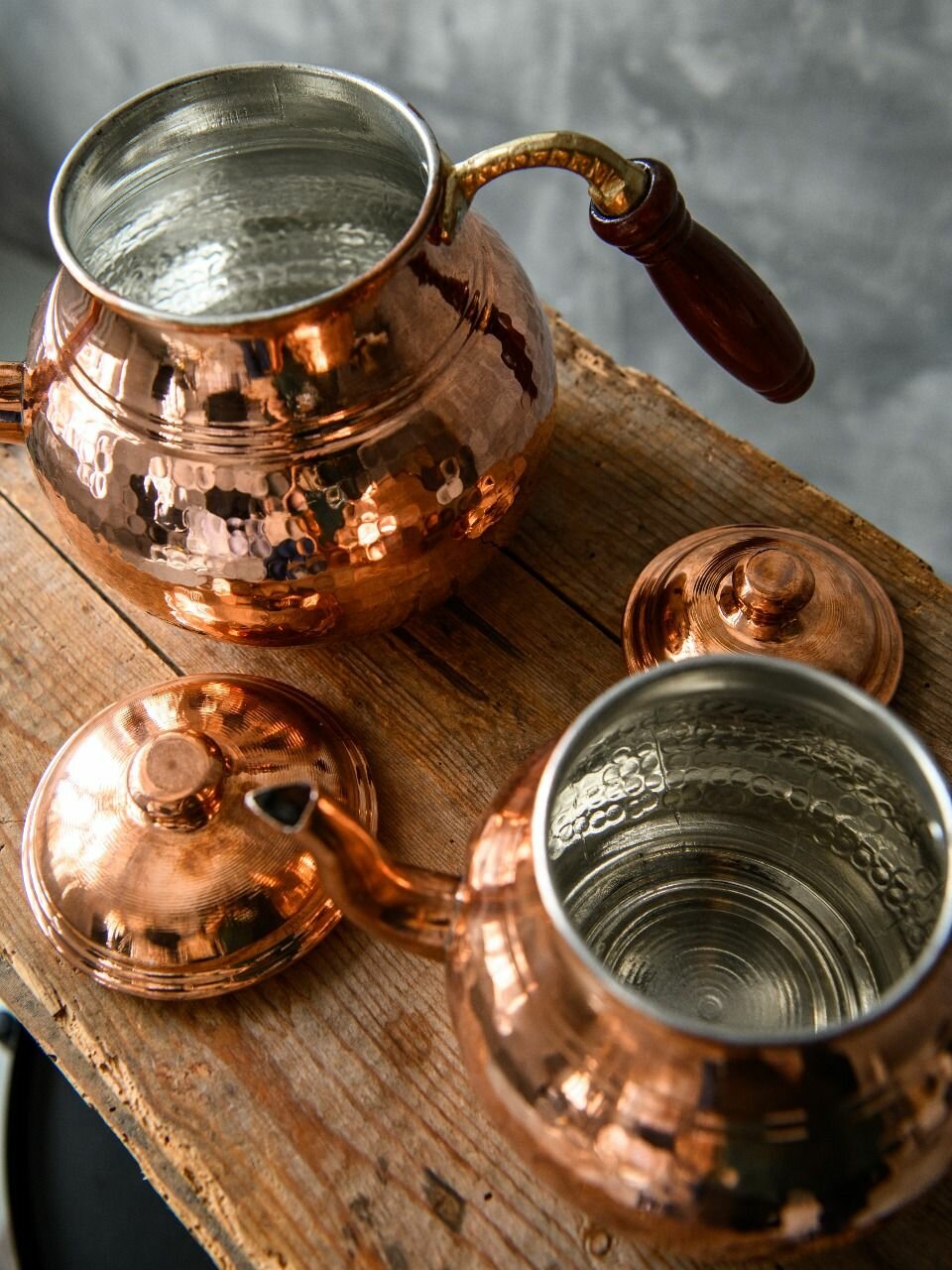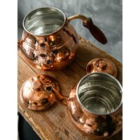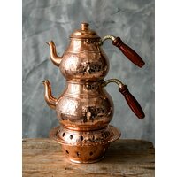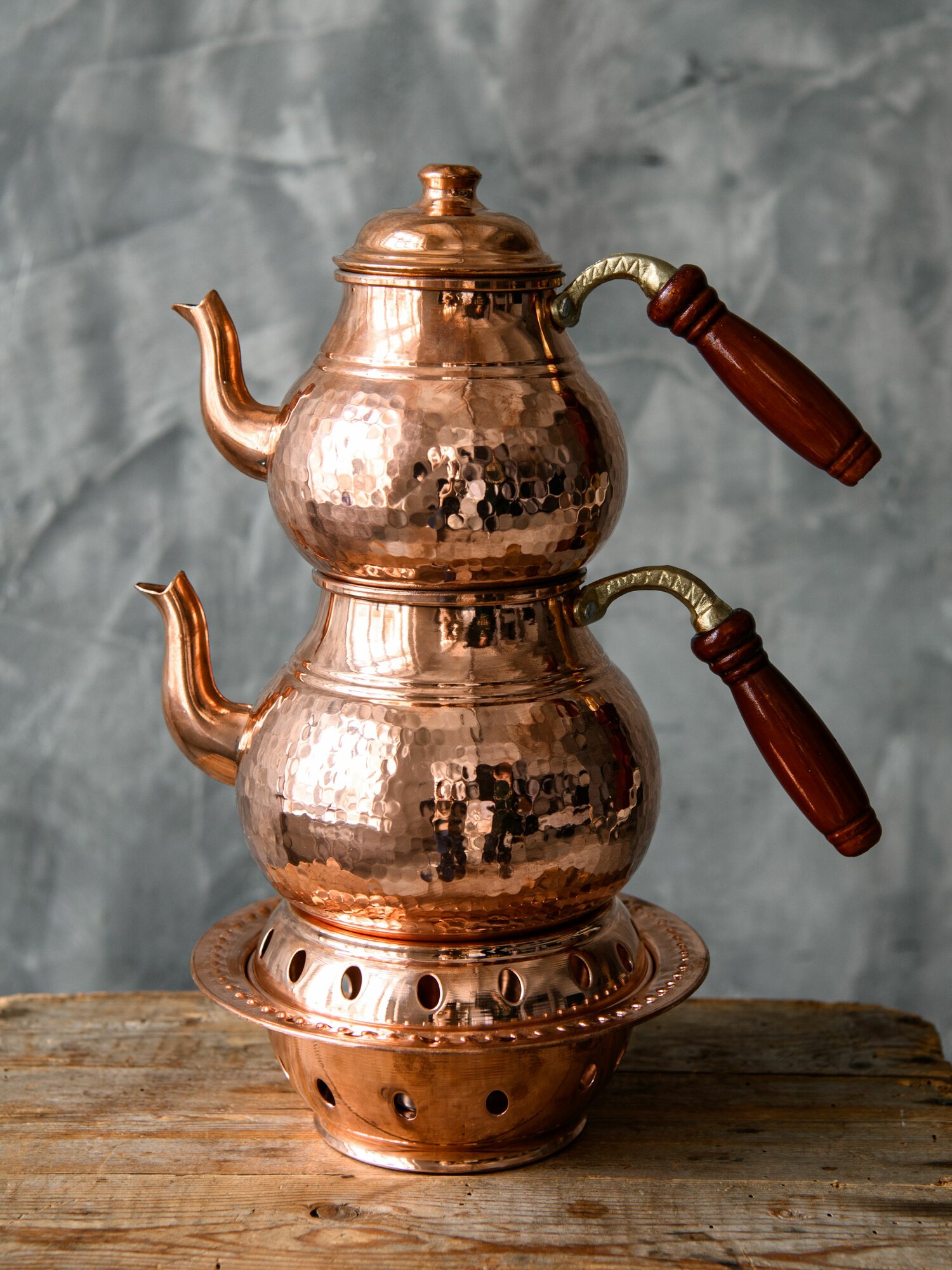 Турецкий медный двойной чайник объемом 3 литра на медной подставке для подогрева - это экологичное и высококачественное решение для любителей чая. Энергосберегающий корпус толщиной 3 мм обеспечивает равномерный и быстрый подогрев, а также долговременное сохранение температурного режима.