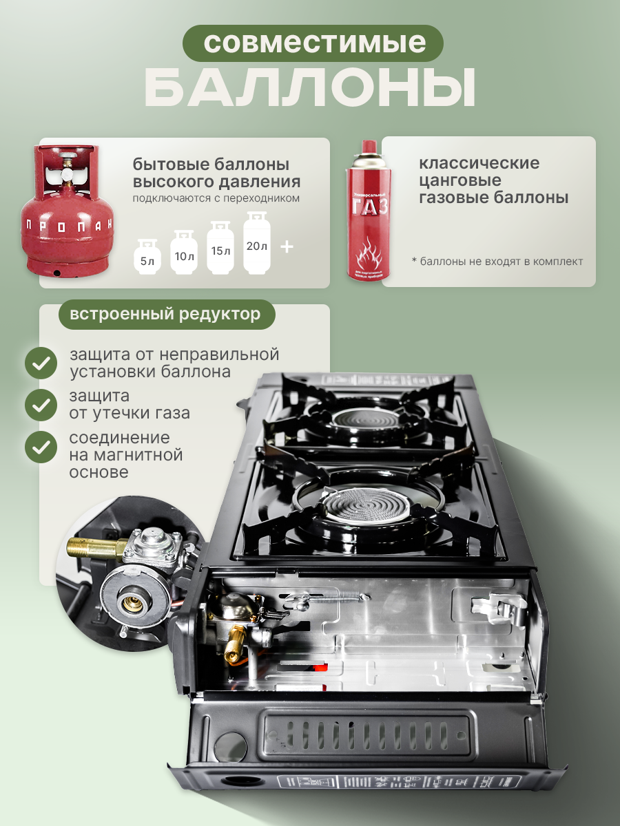 Купить Туристическая газовая плитка 2 конфорки с доставкой по всей России. Туристическая газовая плитка 2 конфорки: сравнение цен, характеристики, фото, актуальное наличие и цены.