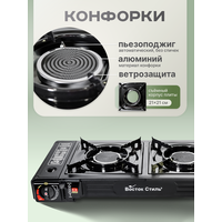 С туристической газовой плиткой 2 конфорки вы сможете наслаждаться горячими блюдами в любом месте, не отказываясь от комфорта!