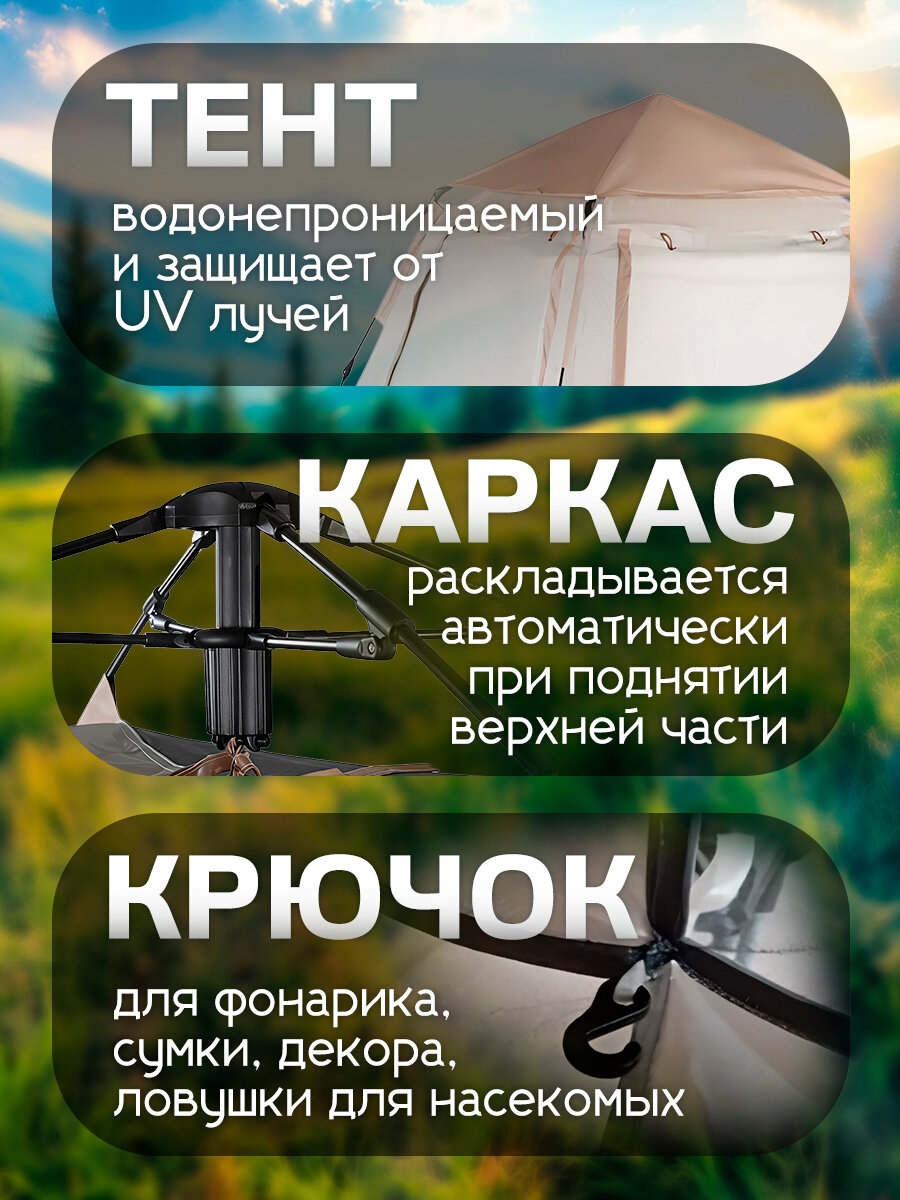 Купить Туристическая палатка BIRDS AND FISH, 4 места, шатровая, стеклопластиковый каркас, автоматическая с доставкой по всей России.