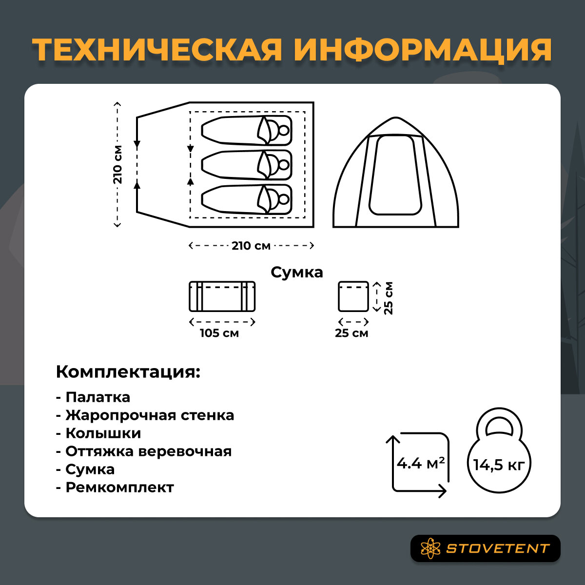 Двухслойная конструкция и печное отопление создают возможность для проживания в туристической палатке при температурах до -40С.
