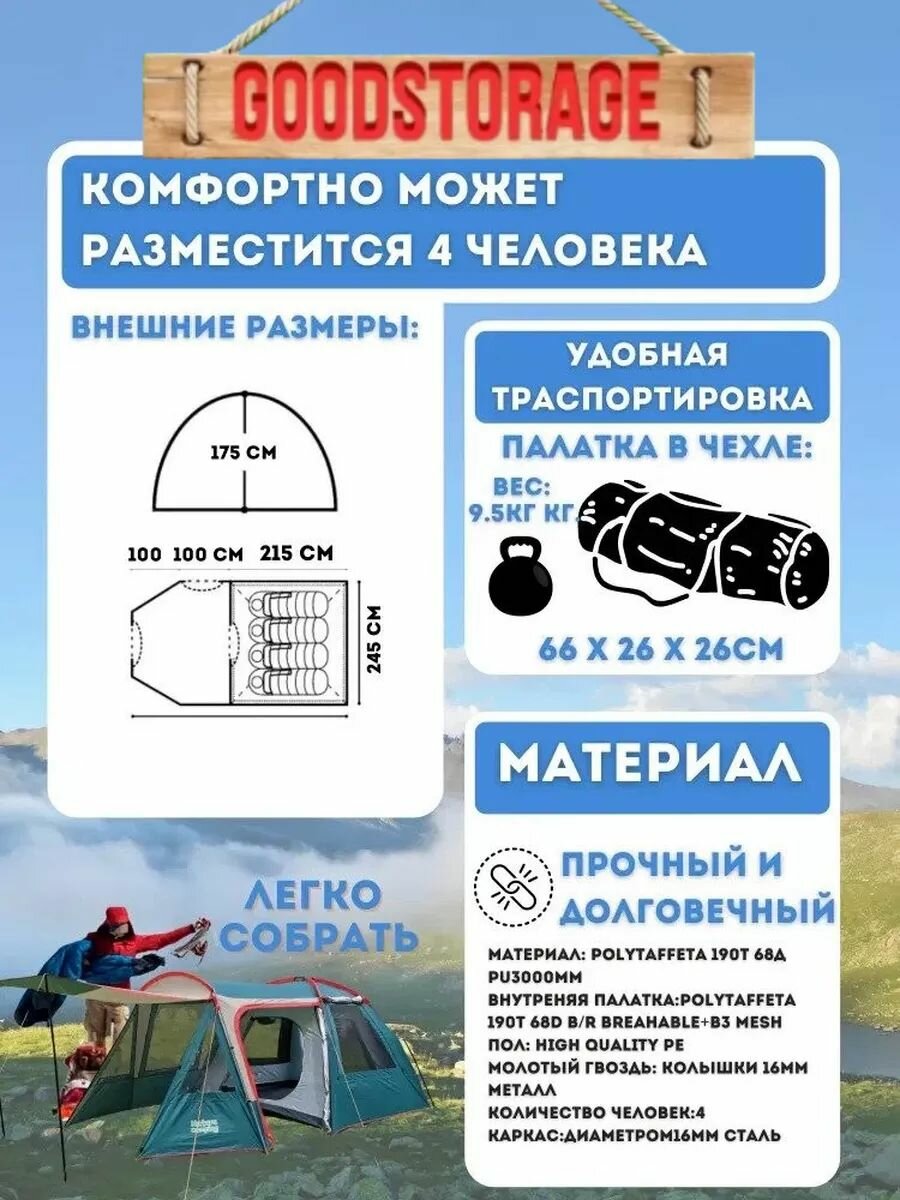 Туристическая палатка Mimir ART-015 - это двухслойная 4-местная палатка, которая станет незаменимым атрибутом для любителей активного отдыха на природе.