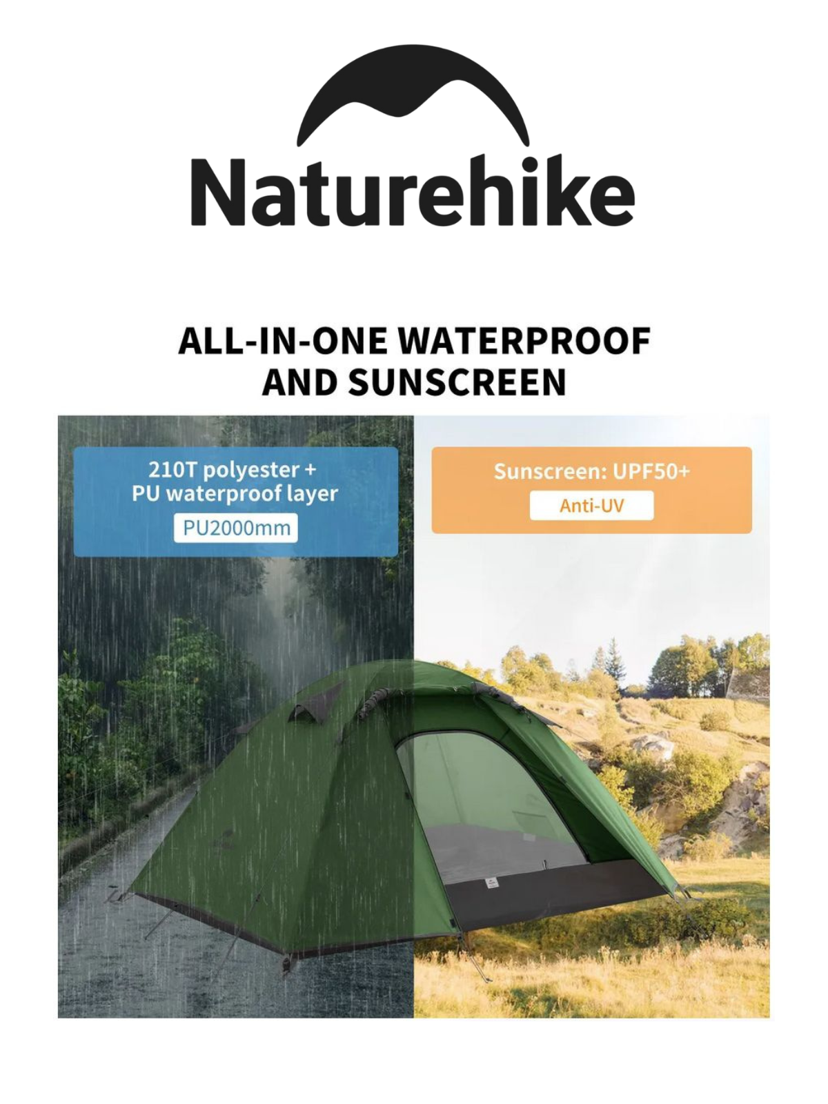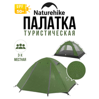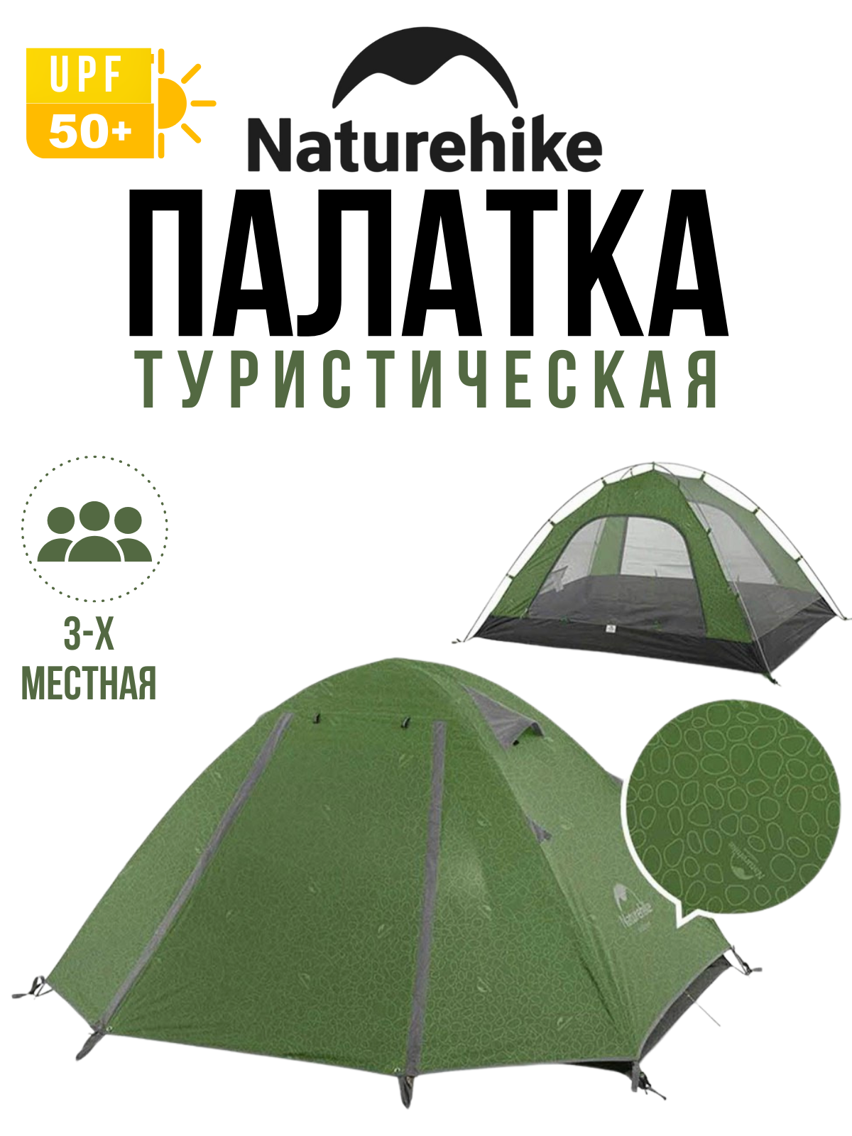 Палатка Naturehike P-Series III: рассчитана на отдых трёх человек. Простая в сборке, имеет двухслойную конструкцию, пространство перед дверью расширено навесом. Надёжная защита от осадков, ветра, ультрафиолетовых лучей. Хорошо пропускает внутрь воздух – находиться в такой палатке будет уютно и комфортно.