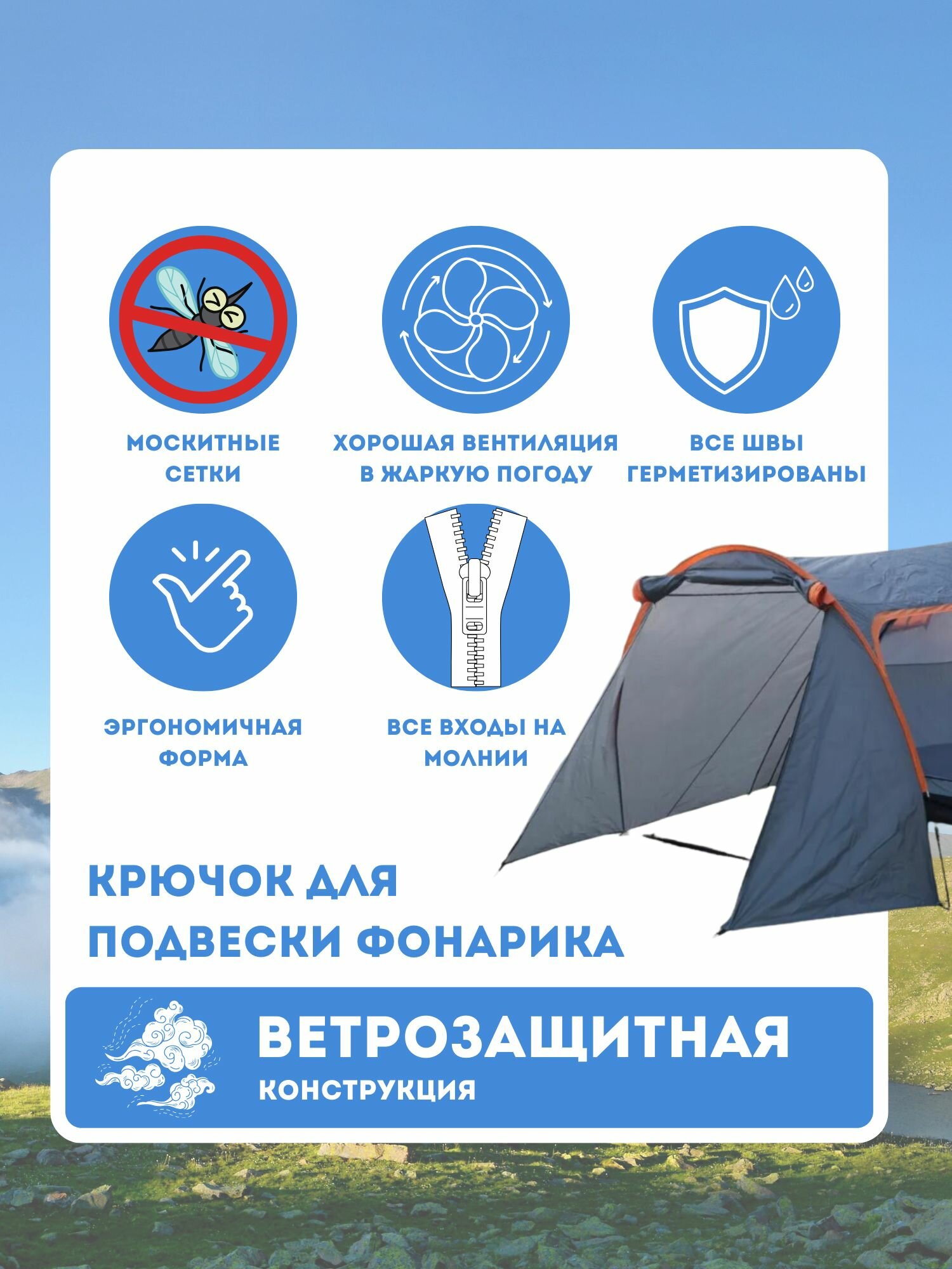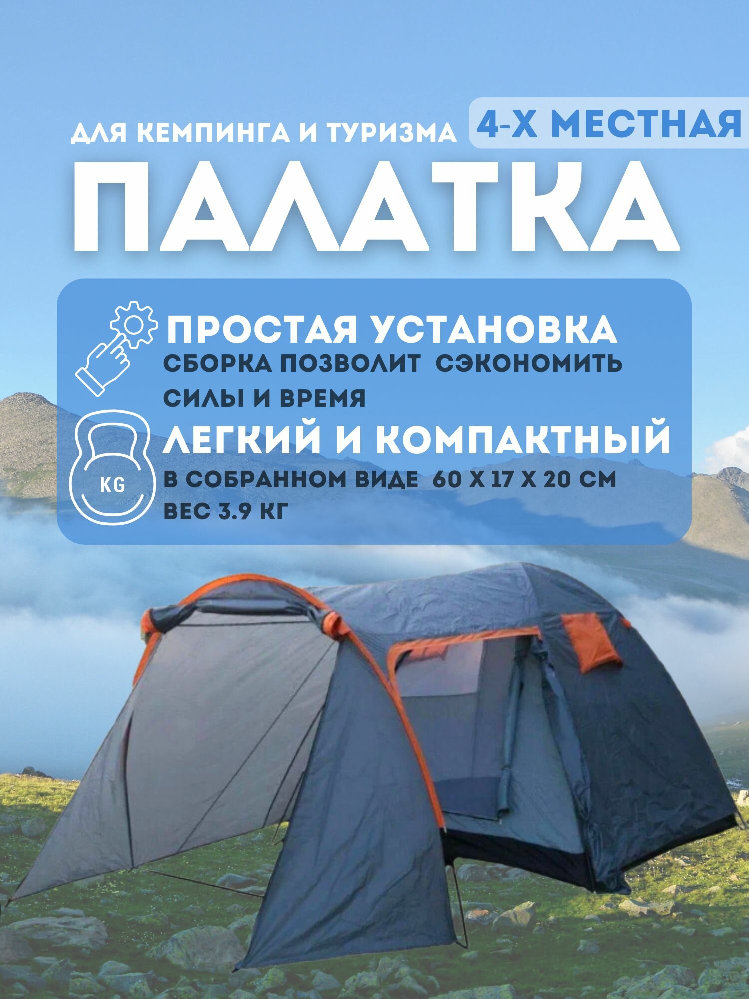 Туристическая палатка VLAKEN YM-D002, 4-местная, автоматическая установка, серая: сравнение цен, характеристики, фото, актуальное наличие и цены.
