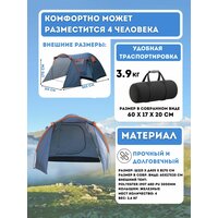 Купить Туристическая палатка VLAKEN YM-D002, 4-местная, автоматическая установка, серая с доставкой по всей России.