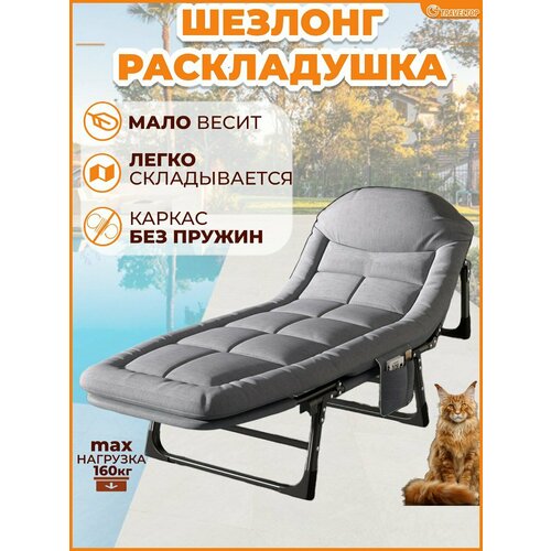 Туристическая раскладушка с регулируемым изголовьем и встроенным матрасом, Traveltop 190х67х28, до160кг: сравнение цен, характеристики, фото, актуальное наличие и цены.