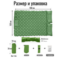 Матрас имеет размеры 120x190x5 см и предназначен для двухместного использования.