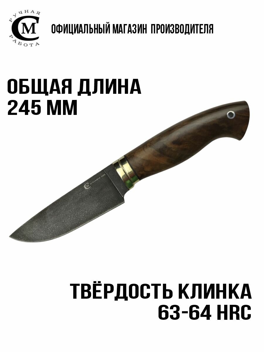 Туристический нож Мастерская Семина «Сокол», сталь ХВ5, кап орех, кожаные ножны: сравнение цен, характеристики, фото, актуальное наличие и цены.
