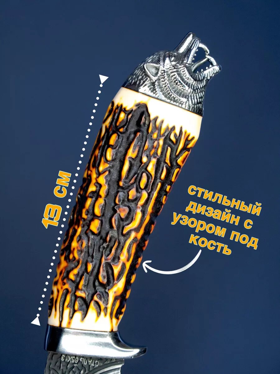 На клинке имеется гравировка "ЛЕВ", которая подчеркивает статус ножа и делает его отличным подарком для мужчины, который ценит практичность и качество.